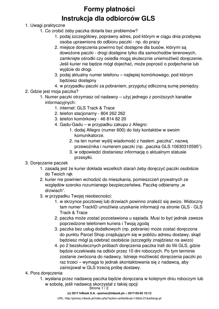 Instrukcja dla odbiorców GLS - Pomoc