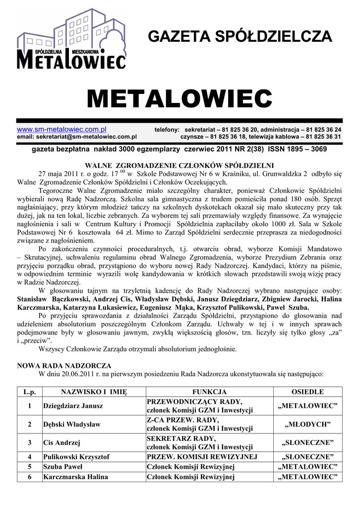 czerwiec 2011 - Spółdzielnia Mieszkaniowa "Metalowiec"