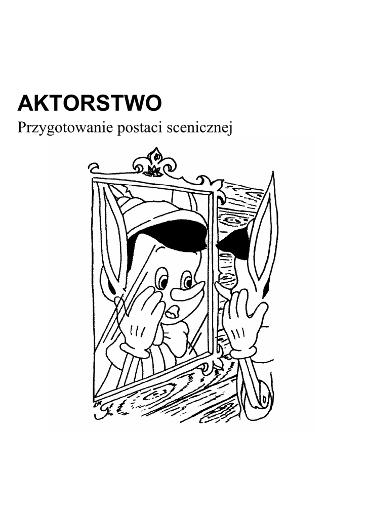 AKTORSTWO Przygotowanie postaci scenicznej 2 I. Przygotowanie postaci scenicznej - Kreacja postaci scenicznej Najważniejszym zadaniem aktora jest wykreowanie postaci scenicznej. Dlatego zanim aktor zagra rolę powinien pamiętać, że wszelkie zachowania się na scenie powinny być usprawiedliwione, umotywowane. Czyli, jak coś robi to musi wiedzieć, po co. - Prostota i szczerość aktora Aktor ma pokazać konkretną osobę, kt…ra czegoś chce, coś czuje, coś ją smuci lub śmieszy. Aktorowi potrzeba szczerości w przekazywaniu uczuć. Na scenie ma żyć i wzruszać się na uczuciami postaci, kt…rą kreuje. Przy czym na scenie nie może być bladego odbicia życia. Postać musi być wyrazista. Zasadniczo na scenie ma panować prostota, ale niekiedy wolno przesadzić w celu wyśmiania kogoś fałszywego, lub wzbudzenia wsp…łczucia dla kogoś dobrego. - Zadania aktora 1. Tworzyć wyrazistość aktorską – odczuwać scenę, jak np. pok…j, czy ogr…d. Korzystać z materiał…w na scenie; 2. Rozwijać fantazję tw„rczą. Być prostym może każdy, ale, aby być aktorem trzeba być tw…rczym, nieoczekiwanym, niebanalnym. 3. Aktorowi potrzebna jest ‘zaraźliwość’, aby ‘porywał’ - zachwycił widza. 4. Podstawowe składniki, z kt„rych aktor buduje postać sceniczną to: głos, oczy, uśmiech, temperament. Z nich ma budować, tworzyć postać sceniczną prostą, prawdziwą, pełną uczuć, szczerą. II. Zasady, kierujące zachowaniem na scenie - Unikać rutyny Aktorowi na scenie zagraża to, że z g…ry wszystko zna: wie, co ma m…wić i jakie ruchy wykonywać. A to może prowadzić do zachowania wymuszonego, machinalnego. Aktor ma natomiast grać żywo, nieoczekiwanie, przypadkowo – słowem: ma zachowywać się, jak żywy człowiek a nie lalka. Aby ominąć to zagrożenie trzeba wiedzieć, jak ludzie się zachowują w codziennym życiu. - Wyraźnie ukazać sens swoich zachowań Podstawową cechą działania ludzi jest motyw. Ludzie coś robią, bo jest jakaś przyczyna. Jak pada deszcz, to zamykają okno. Tak samo przebywając na scenie nie tylko trzeba wiedzieć, co mamy m…wić i robić, ale znać cel działania, wiedzieć, po co to robimy. Ponadto, aktor ma wiedzieć w jakich okolicznościach wykonuje działanie. Gdy to wie pr…buje dobrać r…żne formy zachowania i wybiera najlepszą. - Wewnętrzne motywy Aktor ma na scenie odtworzyć działania postaci, ale, co o wiele ważniejsze, ma ukazać wyraźnie wewnętrzne pobudki, zamiary. Np. Aby śmiech nie był pusty i fałszywy nie wystarczy odtworzyć na scenie wyrazu twarzy i dobrać głosu, kt…ry przypomina śmiech. Dop…ki aktor nie przypomni sobie lub nie znajdzie w otoczeniu tego, co go śmieszy, jego śmiech, choćby technicznie poprawny, będzie tylko formalny i nieszczery. Natomiast, gdy aktor przypomni sobie przyczynę i skupi się na tym śmiesznym obiekcie to można być pewnym, ze także fizyczne cechy śmiechu się pojawią. Podobna sytuacja jest z płaczem, krzykiem, smutkiem, zaskoczeniem i innymi uczuciami. 3 II. Cel działań i zachowań aktorskich - Aktor jest na scenie po coś i jest dotąd aż to uzyska. Działanie sceniczne polega na szeregu małych działań, kt…re zmierzają do osiągnięcia przez aktora jakiegoś celu. Aktor wchodzi na scenę, bo czegoś pragnie i musi wiedzieć, czego pragnie. Następnie, zanim osiągnie ten cel musi dokonać wielu reakcji na nieoczekiwane wydarzenia, kt…re bardziej czy mniej zbliżają go do tego celu. - Wewnętrzne skupienie i kontrola w rozluźnionej formie Aktor wie, co ma robić na scenie. Aby nie stać się lalką, samym mechanizmem ma ciągle z wewnętrzną kontrolą i wewnętrzną motywacją, po kolei wykonywać kolejne cele. Aktor w swym wnętrzu postanawia sobie, czym będzie się zajmował i stara się, jak najbardziej na tym skupić. Np. przygotowuje się do napisania zadania domowego, wyciąga zeszyty, rozpoczyna pracę i coś słyszy (wydaje mu się, że słyszy), przysłuchuje się – rzeczywiście grzmi. Traktuje, to co słyszy, jako prawdziwą zapowiedź burzy, odrywa go to od pracy, niepokoi. Zaczyna wykonywać następny cel zamyka okno. I wtedy, chcąc mocno zatrzasnąć ramę, przytrzasnął sobie palec. Jest tu potr…jna sekwencja – odrabianie zadania – zamykanie okna – przytrzaśnięcie palca. Im dokładniej przykładasz się do jednego z tych cel…w, tym łatwiej ci będzie wykonać zadanie następne. Im lepiej sobie przypomnisz, jak boli przytrzaśnięty palec, im bardziej poważnie będziesz traktował to zdarzenie jako prawdę, tym bardziej zmusisz się do uwierzenia w to i tym lepiej wykonasz to działanie. - Rzeczywiste zjawiska mają wywoływać rzeczywiste reakcje. Trzeba naturalnie przygotować się dodatkowo na inne nieoczekiwane wydarzenia. Jeśli np. podczas podchodzenia do okna na scenę wbiegnie kot, kt…ry nie powinien się tam znaleźć, ale się znalazł. To nie możesz, pragnąc, jak najszybciej zamknąć okno, przydepnąć go, bo na pr…bach nie było kota. To niezgodne z prawdą, kot jest i musisz wziąć to też pod uwagę. - Prawdopodobieństwo życiowe Aktor ma wykonywać działania w spos…b prawdopodobny życiowo. To znaczy tak reagować na rzeczywiste i umowne obiekty, jak to się robi w życiu. Nie dopuszczalne jest by aktor widząc jakiś obiekt udawał, że go nie widzi. Np. wchodząc do pokoju nie widzisz listu, kt…ry jest na stole. Nie możesz udawać, że go nie widzisz, skoro go widzisz. Ale być może coś innego zwr…ciło twoją uwagę, np. doniczka spadła z okna i dlatego na nią zwr…ciłeś uwagę a nie na list. Może być i tak, że masz tak wielkie wewnętrzne kłopoty, że jesteś zanurzony w swoich myślach i dlatego nie myślisz o tym, co jest na zewnątrz. - Sugestywna motywacja Widać tu dokładnie na czym polega zadanie aktora. Nie na pokazaniu na zewnątrz jakiegoś działania: nie widzę listu, ale na prawdziwej motywacji. Nie można pokazać, że chodz