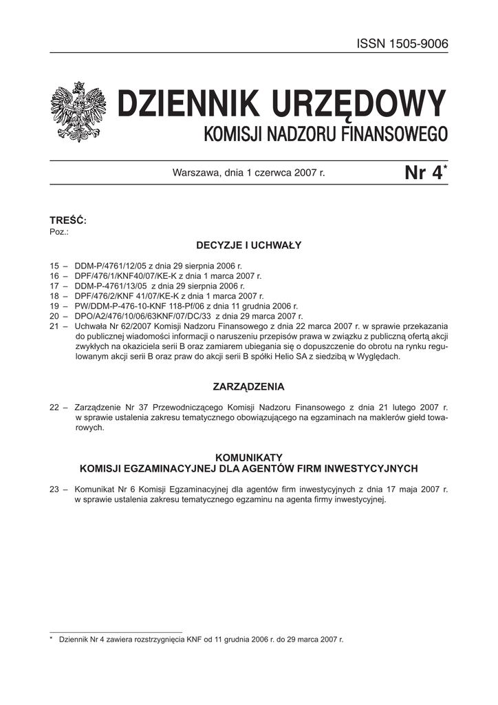 Dziennik Urzędowy Komisji Nadzoru Finansowego nr 4