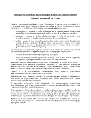Szczegółowa procedura nostryfikacyjna dyplomu ukończenia