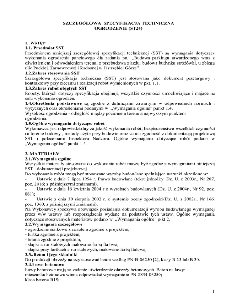 1 SZCZEGÓŁOWA SPECYFIKACJA TECHNICZNA OGRODZENIE
