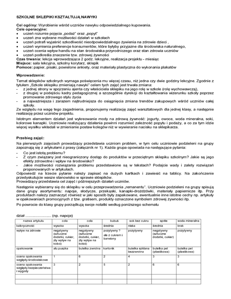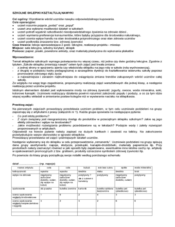 SZKOLNE SKLEPIKI KSZTAŕTUJ NAWYKI Cele operacyjne