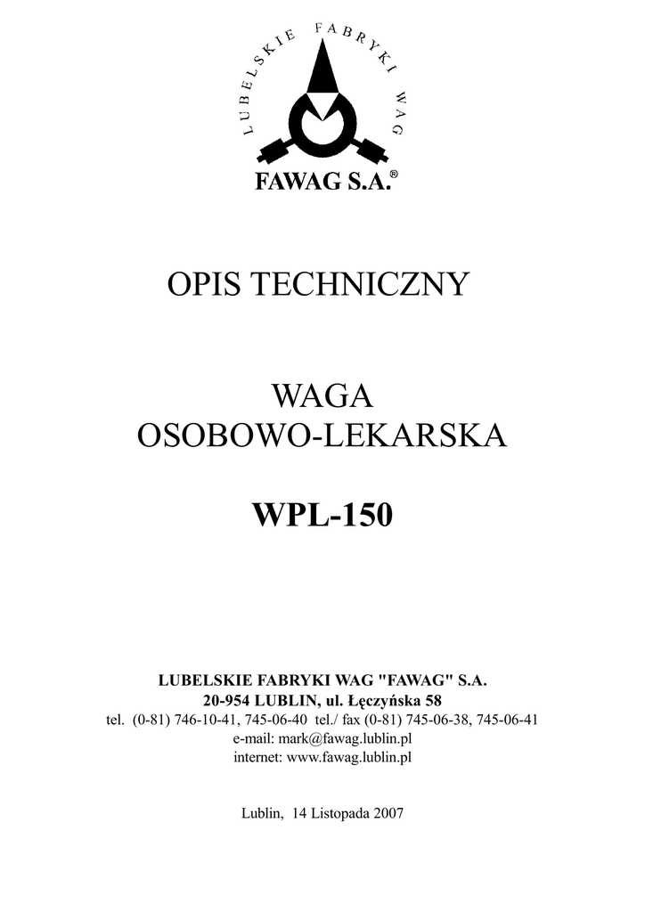 opis techniczny waga osobowo-lekarska wpl-150