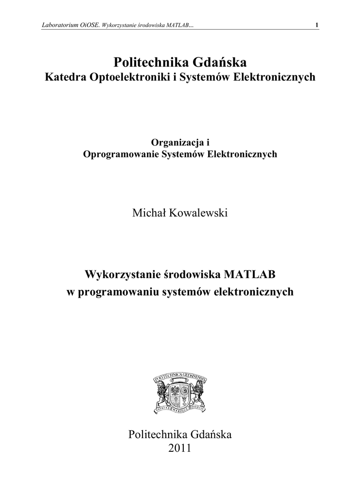 Laboratorium OiOSE. Wykorzystanie środowiska MATLAB...