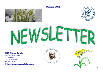 Marzec 2015 NSP Nasza Szkoła im. Janusza Korczaka ul. Liczydło 3 03-138 Warszawa tel. 515 130 903 http://www.naszaszkola.edu.pl 1 WYDARZENIA W NASZEJ SZKOLE W MARCU 2015 R. Konkurs Logicznego Myślenia Konkurs „Świetlik” Konkurs matematyczny „Kangur” Ogólnopolski Konkurs Historyczny - Alfik Historyczny Konkurs j. angielskiego „FOX” Bielański Konkurs Matematyczny Konkurs „Olimpus” z jęz. polskiego – sesja wiosenna Ogólnopolski Konkurs Humanistyczny „Omnibus” Wycieczka do Łowicza i Sromowa Konkurs na najpiękniejszą pisankę wielkanocną Dzień Koloru Żółtego Warsztaty - Inteligencje wielorakie Warsztaty - Jak pomóc dziecku radzić sobie z presją i jej na dziecko nie wywierać? Warsztaty - Techniki aktywizujące w nauczaniu Dzień elegancji i szyku Rekolekcje wielkopostne 2 Marzec w Naszej Szkole stoi pod znakiem konkursów. Konkurs Logicznego Myślenia Klasy 1-3 wezmą udział w konkursie Logicznego myślenia. Do udziału w konkursie nie jest wymagane żadne szczególne przygotowanie matematyczne. Wystarczą jedynie umiejętności rozwiązywania zadań logicznych, łamigłówek i rebusów. Ciekawa formuła zadań konkursowych umożliwia trening i rozwój logicznego myślenia, które przydaje się nie tylko w matematyce czy fizyce, ale także na innych przedmiotach wymagających rozwiązywania problemów. Konkurs polega na pisemnym udzieleniu odpowiedzi na 26 pytań testowych. Zróżnicowany stopień trudności pytań oraz ciekawe opracowanie graficzne powinny stanowić dla uczniów zachętę do udziału. Najlepsi otrzymają dyplomy grawerowane, laureata i wyróżnionego z nadanymi symbolicznymi tytułami Arcymistrza, Mistrza i Eksperta Logicznego Myślenia. Arcymistrzowie i Mistrzowie uhonorowani zostaną dodatkowo nagrodami książkowymi. Pozostali uczestnicy otrzymają dyplomy uznania, a nauczyciele dyplomy poświadczające współorganizowanie ogólnopolskiego, ponadprogramowego konkursu. Konkurs „Świetlik” Klasy 1-6 wezmą udział w konkursie „Świetlik”. Konkurs ten powstał w 2007 roku z inicjatywy dr Dagmary Sokołowskiej, pracownika Uniwersytetu Jagiellońskiego. Głównym celem Konkursu jest rozpowszechnianie nauk przyrodniczych jako ciekawego, fascynującego 3 źródła wiedzy o świecie, dostępnego dla każdego. Konkurs skierowany jest do dzieci z najmłodszych klas, ponieważ to w tym czasie procesu kształcenia rozwijają się najważniejsze predyspozycje, zainteresowania i talenty. Nowatorska formuła, polegająca na przeprowadzeniu doświadczeń, wskazuje na kilka ważnych elementów: uświadamia, że wszystko, co dzieje się w naturze ale też w domu, szkole, w środowisku najbliższym każdemu dziecku, da się wyjaśnić w sposób naukowy. Dlatego też każdy może mieć swój wkład w rozwój świata. Ponadto, doświadczenia przeprowadzane w warunkach domowych pozwalają na ciekawe, kreatywne spędzenie czasu w gronie rodziny. Uczą dyscypliny, cierpliwości i odpowiedzialności. Formuła testu również nastawiona jest na pokazanie dzieciom, że oprócz wiedzy teoretycznej, niezwykle istotna jest umiejętność logicznego rozumowania, przeprowadzania wywodów, które są charakterystyczne dla świata nauki. Podczas warsztatów dzieci mogą poznać nie tylko ciekawe doświadczenia, ale też zobaczyć, na czym polega praca naukowca, czym się charakteryzuje to trudne, ale bogate życie. Pracujący w Fundacji naukowcy to fizycy doświadczalni, którzy swoje życie poświęcają rozwojowi świata. Uczestniczą w konferencjach, podróżują po całym świecie w poszukiwaniu możliwości optymalizacji nauczania. Tworzenie doświadczeń i testów do Konkursu to dla nich po prostu wielka przyjemność. Konkurs matematyczny „Kangur” Międzynarodowy konkurs "Kangur Matematyczny" jest adresowany do uczniów szkół podstawowych, gimnazjalnych i średnich, od klasy drugiej szkoły podstawowej do klas maturalnych w liceach i technikach. Rozgrywany jest sześciu kategoriach. Konkurs ma charakter jednorazowego testu. Zadania oraz termin są ustalane przez władze stowarzyszenia Kangourou Sans Frontie`res. Na rozwiązanie testu przeznaczone jest 75 minut. Wspólna dla wszystkich krajów data konkursu oraz te same zestawy pytań dla poszczególnych poziomów podnoszą atrakcyjność konkursu. Wprawdzie wyniki Konkursu mogłyby być wykorzystane do opracowania międzynarodowych rankingów 4 czy innych form rywalizacji pomiędzy krajami (jak ma to miejsce np. w przypadku Międzynarodowej Olimpiady Matematycznej), jednak nie byłoby to zgodne z główną ideą konkursu, którą jest sprowokowanie jak najliczniejszej manifestacji matematycznej o charakterze wspólnej, intelektualnej zabawy. Dzień konkursu, "Dzień Kangura" stał się już w szkołach wielu krajów prawdziwym świętem matematyki, nie ograniczającym się wyłącznie do samego konkursu. Jest też okazją do realizowania innych form popularyzacji matematyki Ogólnopolski Konkurs Historyczny - Alfik Historyczny Celem konkursu Alfik Historyczny jest zainspirowanie dzieci i młodzieży do poznawania historii. Zarówno tej bliższej, dotyczącej dziejów Polski, jak i tej, która obejmuje wiedzę o przeszłości Europy i świata. Nadrzędne jest kreowanie tzw. myślenia historycznego, czyli świadomości dziejów oraz roli człowieka w nich. Oprócz znajomości faktografii, istotna w rozwiązywaniu zadań będzie umiejętność kojarzenia faktów i łączenia ich w ciąg przyczynowo - skutkowy. Uczeń decydujący się na podjęcie walki o konkursowe laury zmierzy się także z pytaniem o jego własne miejsce w historii. Wielu z uczniów potraktuje konkurs jako możliwość sprawdzenia swojej wiedzy, inni odkryją, że nauka historii nie musi być żmudnym zapamiętywaniem dat, postaci i wydarzeń mających miejsce w minionych wiekach. Udział w konkursie pomaga uczestnikom zdobyć dodatkowe punktów w staraniach o przyznanie stypendiów oraz ułatwia osiąganie lepszych wyników 