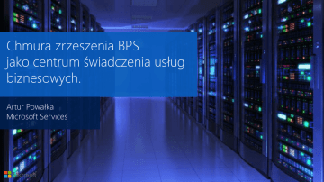 Chmura zrzeszenia BPS jako centrum świadczenia usług biznesowych. Artur Powałka Microsoft Services Tradycyjne podejście do wirtualizacji IT receives requests and begins the provisioning process Business system administrators request infrastructure through email or an IT request portal Consumption of infrastructure resources and operational costs increase IT Provisioning of VMs uses basic automation Increased IT Costs The business over-provisions infrastructure with no visibility or allocation of the true cost of running the infrastructure 10/3/2013 Biznes Ongoing maintenance of deployed VMs and virtual hosts is a manual, highly coordinated activity VMs are provisioned to business-unit-specific “silos” of virtual hosts Asset registration, setting up monitoring, maintenance windows, backup, security, and deploying the required applications is a series of manual tasks across multiple teams, causing delays in business processes 2 Prywatna Chmura Microsoft Provisioning of complete services is highly automated Business system administrators request complete services through a role-based, self-service interface Consumption of infrastructure resources is elastic and optimized as a balance between business need and allocated cost 10/3/2013 Biznes Business units are allocated units of quota and reporting of consumption is provided for chargeback or showback purposes IT Infrastructure resources are pooled across business units for maximum density and availability Reduced IT Costs Asset registration, setting up monitoring, maintenance windows, backup, security, and deployment of applications are highly automated The ongoing maintenance of deployed VMs and virtual hosts is automated and orchestrated to have zero downtime 3 Zarządzanie aplikacjami Prywatna Chmura Microsoft Zarządzanie infrastrukturą Dostarczanie i automatyzacja usług konfiguracja Właściciel aplikacji Self service Model usługowy Dostarczanie i automatyzacja usług Administrator Data center monitoring Infrastructure Management Automatyzacja procesu usługowego Architektura referencyjna Portal użytkownika Warstwa koordynacji SharePoint/Silverlight® Self-service User Interface System Center Orchestrator Warstwa zarządzania Warstwa automatyzacji Porządkuje procesy od strony biznesowej Grupuje zadania i jednostkowe czynności Windows PowerShell® 2.0 Web Services Management (WS-Man) Windows® Management Instrumentation Automatyzuje wykonanie jednostkowych zadań Wirtualizuje zasoby Warstwa wirtualizacyjna Warstwa sprzętowa Udostępnia usługi biznesowe dla użytkowników Servers, networks, storage, PowerShell, WS-Man, Storage Management Initiative Udostępnia sprzęt i podstawowe usługi Korzyści z Chmury Prywatnej Microsoft A. Zarządzanie - Rekomendacja D – 17/22 rekomendacji (!) Nakłady na zarządzanie i utrzymywanie Nakłady na zarządzanie i utrzymywanie - Rozliczalność - KOSZTY - Automatyzacja i Skalowalność Nakłady na zarządzanie i utrzymywanie Software Sprzęt i infrastruktura - Szybkość reakcji na potrzeby klienta A Software Software Sprzęt i infrastruktura C Tradycyjne Data Center Zwirtualizowane Data Center -60% !!! - Optymalizacja inwestycji w technologię Microsoft B Sprzęt i infrastruktura B. Oprogramowanie - Pakiet oprogramowania - Zaawansowana integracja C. Sprzęt - Zarządzanie pojemnością Prywatna Chmura Microsoft - Planowanie wykorzystania - Optymalizacja dostępności System Center 2012 Application Insight Service Management IT Process Automation 2010 2009 Server 2007 Virtualization Backup 2006 & Recovery 2000 Monitoring 1994 Configuration ENABLE ENTER THE DATA CENTER INTEGRATE PROVIDE EMBRACE Bardzo dziękuję za uwagę! [email protected] Microsoft Services 10/3/2013 9