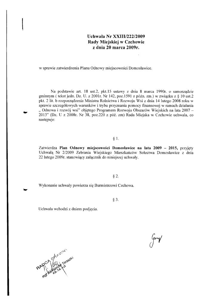 plan odnowy miejscowości domosławice na lata 2009-2015