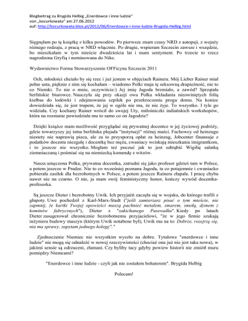 Blogbeitrag zu Brygida Helbig „Enerdowce i inne ludzie“