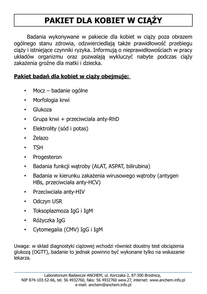 pakiet dla kobiet w ciąży - Laboratorium Badawcze ANCHEM