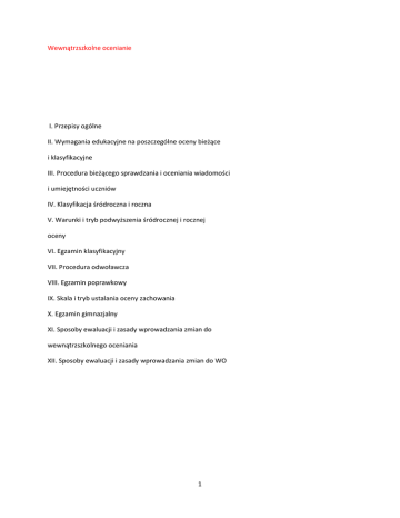 1 Wewnątrzszkolne ocenianie I. Przepisy ogólne II