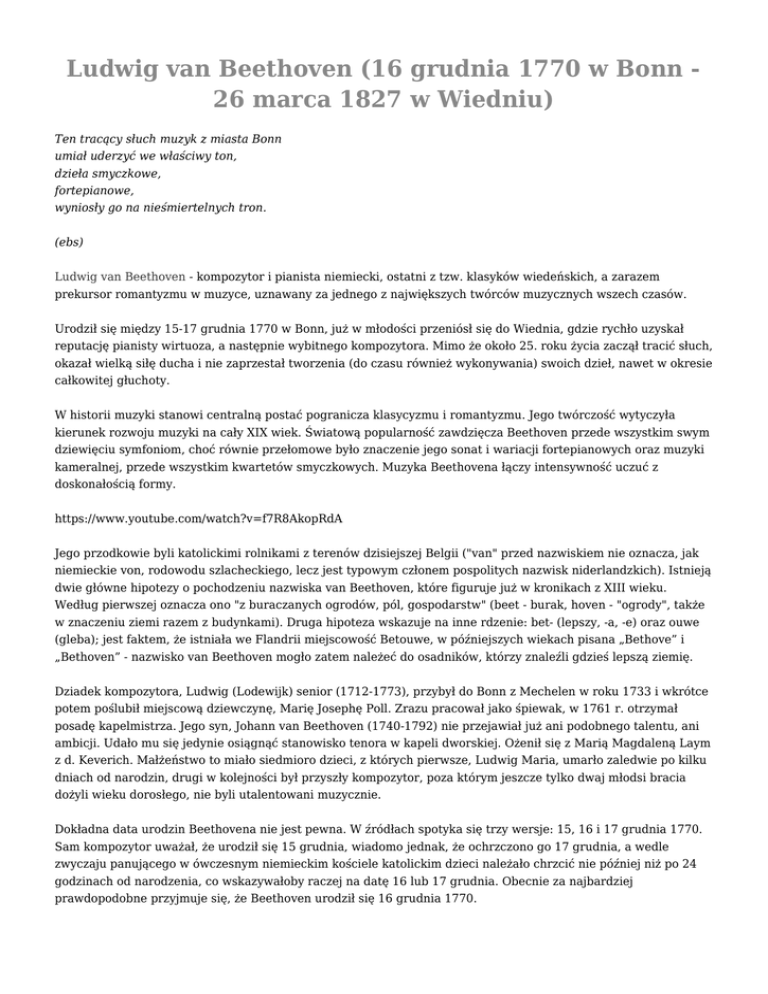 prawdopodobne przyjmuje się, że Beethoven urodził się 16 grudnia 1770.