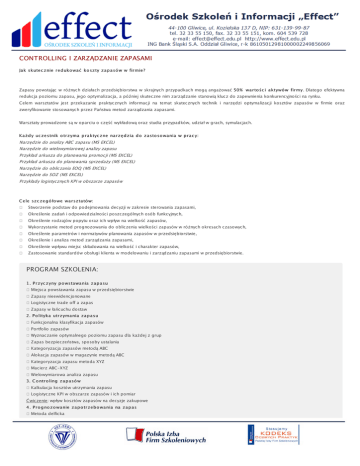 CONTROLLING I ZARZĄDZANIE ZAPASAMI