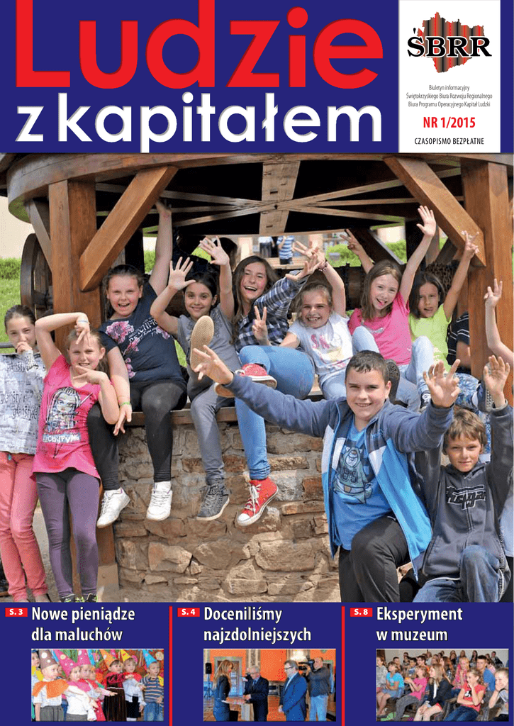 Biuletyn informacyjny Świętokrzyskiego Biura Rozwoju Regionalnego Biura Programu Operacyjnego Kapitał Ludzki Nr 1/2015 Fot. Muzeum Narodowe w Kielcach czasopismo bezpłatne S. 3 Nowe pieniądze dla maluchów S. 4 Doceniliśmy najzdolniejszych S. 8 Eksperyment w muzeum Szanowni Państwo, Niedawno po raz kolejny miałem zaszczyt i przyjemność składać gratulacje grupie młodych mieszkańców naszego regionu, uczniów gimnazjów i szkół średnich, którzy zostali laureatami Programu Stypendialnego dla szczególnie uzdolnionej młodzieży województwa świętokrzyskiego. Projekt, finansowany ze środków Programu Operacyjnego Kapitał Ludzki, siłą rzeczy się kończy, tak jak dobiega końca cały PO KL. Na szczęście nie oznacza to jednak, że zabraknie wsparcia dla młodych, wybitnie zdolnych mieszkańców Kielecczyzny. W nowej unijnej perspektywie finansowej, o której szeroko informujemy w bieżącym wydaniu biuletynu „Ludzie z kapitałem”, przewidziane jest kontynuowanie tego typu przedsięwzięć. Nadal będziemy więc pomagać uczniom zdolnym i pracowitym, z naciskiem na tę drugą cechę, bo – jak słusznie przypominają nauczyciele stypendystów – same zdolności to tylko wstęp do osiągania sukcesów. Bez ciężkiej, systematycznej pracy, wiele się nie osiągnie. Warto nagradzać, wspierać finansowo tych, którzy tę prawdę rozumieją już od dzieciństwa. I mają wyniki – bardzo wysokie średnie ocen, tytuły finalistów i laureatów regionalnych i krajowych olimpiad, a nawet udział w pierwszych autorskich projektach badawczych. Program stypendialny, z bardzo dobrymi efektami wdrażany do tej pory przez Świętokrzyskie Biuro Rozwoju Regionalnego, to tylko jeden z elementów całego wachlarza działań PO KL, obliczonych na podniesienie poziomu świętokrzyskiej edukacji i szerzej – poprawę stanu tzw. kapitału społecznego w naszym regionie. Wśród tych działań była też m. in. pomoc uczniom z trudnościami, rozwój i doposażenie sieci przedszkoli, wsparcie szkół zawodowych, organizacja krajowych i zagranicznych staży i wiele innych przedsięwzięć. Możliwości udzielania tego typu pomocy, podobnie jak w przypadku stypendiów, nie znikają. Gorąco więc zachęcam samorządy, szkoły i organizacje pozarządowe do tworzenia projektów edukacyjnych w ramach „społecznej” części nowego Regionalnego Programu Operacyjnego. Piotr Żołądek Członek Zarządu Województwa Świętokrzyskiego Biuletyn Informacyjny Świętokrzyskiego Biura Rozwoju Regionalnego Biura Programu Operacyjnego Kapitał Ludzki Wydawca: Świętokrzyskie Biuro Rozwoju Regionalnego, ul. Targowa 18, 25-520 Kielce, tel. 41-362-70-12 2 Biuletyn ŚBRR – BIURA PO KL Redakcja: Biuro Programu Operacyjnego Kapitał Ludzki, ul. Jagiellońska 70, 25-956 Kielce tel. 41 335 06 03 w. 181, www.pokl.sbrr.pl Redaguje zespół. Redaktor naczelny: Artur Potaczała, e-mail: [email protected] DTP: DTP Studio Adam Ziółkowski Druk: Agencja reklamowa Czarno na białym Przedruk dozwolony za podaniem źródła. Redakcja nie zwraca materiałów nie zamówionych oraz zastrzega sobie prawo skracania i adiustacji tekstów. Blisko 700 tys. zł z Programu Operacyjnego Kapitał Ludzki przeznaczy w tym roku Świętokrzyskie Biuro Rozwoju Regionalnego na wsparcie najmłodszych mieszkańców naszego regionu. Z unijnych pieniędzy będą mogły skorzystać cztery świętokrzyskie gminy prowadzące szkoły z oddziałami przedszkolnymi. – Z oszczędności, powstałych w wyniku rozliczania zamykanych projektów i różnic przeliczeniowych w kursie euro, udało się nam pozyskać dodatkowe fundusze – mówi dyrektor Świętokrzyskiego Biura Rozwoju Regionalnego, Krzysztof Domagała. – Dostaliśmy zgodę Ministerstwa Infrastruktury i Rozwoju, aby przeznaczyć je na doposażenie „zerówek” szkolnych w kolejnych gminach naszego województwa – Opatowie, Baćkowicach, Ćmielowie i Brodach. Do tej pory z tego rodzaju wsparcia skorzystały już 32 świętokrzyskie gminy, w których poziom upowszechnienia edukacji przedszkolnej jest najniższy w regionie (na podstawie danych Systemu Informacji Oświatowej prowadzonego przez MEN). Każda ze wskazanych gmin będzie mogła wnioskować o wsparcie dla podległych im oddziałów przedszkolnych przy szkołach podstawowych. Maksymalna kwota przypadająca na jedną placówkę to 87,3 tys. zł. dla maluchów Zgodnie z koncepcją MEN, od 1 września 2015 r. gminy zostaną zobowiązane do zapewnienia miejsca w przedszkolu wszystkim dzieciom czteroletnim, a od 1 września 2017 r. – również trzyletnim. Wsparcie unijne jest odpowiedzią na częsty problem nieprzystosowania oddziałów przedszkolnych, działających przy wiejskich szkołach, do potrzeb młodszych dzieci. Zwyczajowo bowiem z oddziałów przedszkolnych korzystały dotychczas wyłącznie dzieci 5 – i 6-letnie, objęte obowiązkiem kształcenia. Dotacja z programu Kapitał Ludzki może być przeznaczona np. na przygotowanie placu zabaw (zakup i montaż wyposażenia), dostosowanie pomieszczeń (m. in. zakup i montaż wyposażenia do sal, toalet, kuchni), zakup zabawek, pomocy dydaktycznych, mebli, tablic interaktywnych i innego sprzętu. Warunkiem przyznania dofinansowania jest zapewnienie funkcjonowania oddziału przedszkolnego po zakończeniu realizacji projektu przez co najmniej dwa lata. Doposażenie „zerówek” będzie wdrażane w trybie systemowym (dopuszcza on możliwość nawet kilkakrotnej poprawy złożonego wniosku), w ramach Poddziałania 9.1.1 PO KL „Zmniejszenie nierówności w stopniu upowszechnienia edukacji przedszkolnej”. Analogiczne nabory wniosków zostały przeprowadzone w 2013 i 2014 roku. Dofinansowano wówczas 43 projekty o łącznej wartości prawie 13 mln złotych, w wyniku których wsparcie uzyskało 105 oddziałów wychowania przedszkolnego w naszym regionie. Od początku wdrażania programu Kapitał Ludzki, ŚBRR przekazało unijne pieniądze na realizację 294 projek