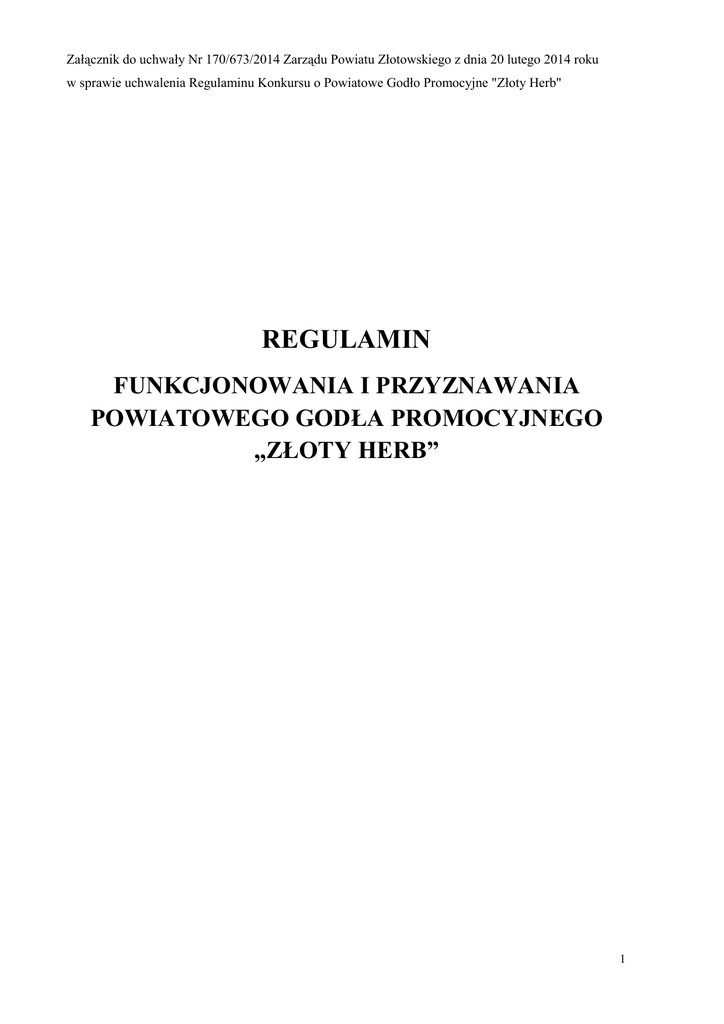 regulamin "ZŁOTY HERB" - Starostwo Powiatowe w Złotowie