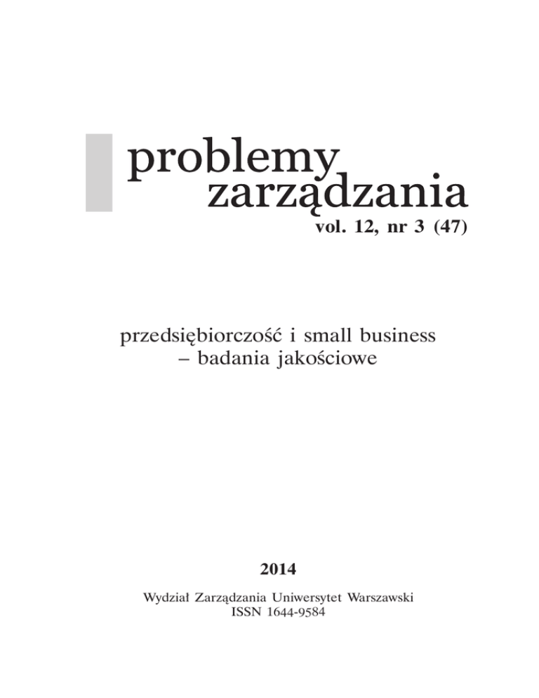 vol. 12, nr 3 (47) przedsiębiorczość i small business – badania jakościowe 2014 Wydział Zarządzania Uniwersytet Warszawski ISSN 1644-9584 Redakcja dr hab. prof. UW Beata Glinka, dr hab. prof. UW Przemysław Hensel Redaktorzy tematyczni dr Bartosz Sławecki, dr hab. prof. UW Beata Glinka Redaktor statystyczny prof. dr hab. Jerzy Wierzbiński Recenzenci dr dr dr dr dr dr dr dr dr dr dr dr Magdalena Andrałojć hab. Roman Batko Dominik Buttler Małgorzata Ciesielska Sylwia Ciuk Joanna Furmańczyk hab., prof. UW Beata Glinka hab., prof. UW Przemysław Hensel Michał Izak hab., prof. UJK Jarosław Karpacz Jerzy Kaźmierczyk hab., prof. ALK Dominika Latusek dr Maciej Ławrynowicz doc. dr Tomasz Ochinowski dr hab. Jacek Pasieczny dr Anna Pawłowska dr Agnieszka Postuła dr hab. Radosław Rybkowski dr Joanna Schmidt dr Bartosz Sławecki dr hab., prof. UEK Krzysztof Wach dr Michał Zawadzki dr hab. Marcin Żemigała Redakcja językowa mgr Monika Sikorska, mgr Amelia Wydra Sekretarz redakcji mgr Anita Sosnowska Rada Programowa prof. prof. prof. prof. prof. prof. prof. Bernard Arogyaswamy (Le Moyne College, NY) dr hab. Ryszard Borowiecki (Uniwersytet Ekonomiczny, Kraków) George Cairns (RMIT, Australia) Lothar Cerny (Cologne University of Applied Sciences) Barbara Czarniawska (Gothenburg Research Institute, Uniwersytet w Göteborgu) dr hab. Marian Gorynia (Uniwersytet Ekonomiczny, Poznań) dr hab. Stefan Kwiatkowski (Wydział Zarządzania, UW i Akademia Leona Koźmińskiego w Warszawie) prof. dr hab. Krzysztof Konecki (Instytut Socjologii, Uniwersytet Łódzki) prof. dr Slawomir Magala (Rotterdam School of Management, Erasmus University) dr Julian Mahari (BPH Breakthrough Projects Holding AG, Szwajcaria) prof. Jeff Michelman (University of North Florida) prof. Gyewan Moon (Kyungpook National University) prof. dr hab. Alojzy Z. Nowak (Wydział Zarzadzania, UW) prof. dr hab. Krzysztof Obłój (Wydział Zarzadzania, UW) prof. Patrick O’Sullivan (Grenoble Bussines School, Francja) prof. Rolf Solli (Goteborg University i Gothenburg Research Institute, Szwecja) prof. Victor Starodubrovskij (Międzynarodowy Instytut Zarządzania, Moskwa) prof. Jeff W. Steagall (Weber University, Uthah) prof. dr hab. Andrzej Szumański (Wydział Prawa i Administracji, Uniwersytet Jagielloński) prof. Ruth Taplin (University of Leicester) prof. zw. dr hab. Jan Turyna (Wydział Zarządzania UW) prof. Janine Wedel (SPP, George Mason University) prof. dr hab. Zofia Wysokińska (Instytut Ekonomii, Uniwersytet Łódzki) prof. dr hab. Anna Zielińska-Głębocka (Wydział Ekonomiczny, Uniwersytet Gdański) Adres redakcji Redakcja Problemów Zarządzania, Szturmowa 1/3 pok. A102, 02-678 Warszawa www.pz.wz.uw.edu.pl, [email protected] Wydawca Wydawnictwo Naukowe Wydziału Zarządzania UW Pismo można zaprenumerować lub nabyć pojedyncze egzemplarze, wysyłając zamówienie na e-mail: [email protected] lub fax: (22) 5534198 z dopiskiem: Wydawnictwo Naukowe WZ. Chęć dokonania prenumeraty można również zgłaszać telefonicznie pod numerem: (22) 5534198. Na zamówieniu złożonym przez instytucję należy podać: nazwę instytucji zamawiającej, adres, numer NIP oraz zgodę na wystawienie faktury bez podpisu odbiorcy. Cena kwartalnika dla prenumeratorów 25 zł (100 zł za rok). Wysyłka niezwłocznie po ukazaniu numeru. Cena prenumeraty zawiera koszt przesyłki. Prenumeratorzy prywatni (nie instytucje) mogą zamawiać kwartalnik wysyłając pieniądze na konto: Uniwersytet Warszawski Wydział Zarządzania, numer konta: 11-116022020000000060848803 z dopiskiem „zapłata za kwartalnik Problemy Zarządzania”. Opracowanie komputerowe, druk i oprawa: Dom Wydawniczy ELIPSA, ul. Inflancka 15/198, 00-189 Warszawa tel./fax 22 635 03 01, 22 635 17 85 e-mail: [email protected], www.elipsa.pl Spis treści Od redaktorów naukowych. . . . . . . . . . . . . . . . . . . . . . . . . . . . . . . . . . . 5 Artykuły Metody jakościowe w badaniach przedsiębiorczości międzynarodowej Aleksandra Wąsowska . . . . . . . . . . . . . . . . . . . . . . . . . . . . . . . . . . . . . . . 9 Wykorzystanie metod jakościowych w badaniu zarządzania wiedzą w organizacjach typu born global – przesłanki, warsztat badawczy oraz uzyskanie wyniki Kaja Prystupa-Rządca . . . . . . . . . . . . . . . . . . . . . . . . . . . . . . . . . . . . . . . 26 Opowieści o tworzeniu organizacji. Historiografia przedsiębiorczości jako program badawczy i praktyczny Monika Kostera, Bartosz Sławecki . . . . . . . . . . . . . . . . . . . . . . . . . . . . . 47 Wpływ trwałości wspólnoty lokalnej na reguły gry – analiza neoinstytucjonalna rozwoju przedsiębiorczości lokalnej Paweł Kłobukowski . . . . . . . . . . . . . . . . . . . . . . . . . . . . . . . . . . . . . . . . . 64 Motywacja przedsiębiorcza a identyfikacja okazji Maciej Koczerga . . . . . . . . . . . . . . . . . . . . . . . . . . . . . . . . . . . . . . . . . . . 88 Przejawy przedsiębiorczości w sporcie w kontekście uwarunkowań kulturowych i organizacyjnych rozwoju branży Urszula Starakiewicz, Magdalena Kubów. . . . . . . . . . . . . . . . . . . . . . . . 109 Projekt, co to jest? Etnografia architektów Michał Reduta . . . . . . . . . . . . . . . . . . . . . . . . . . . . . . . . . . . . . . . . . . . . . 127 Badanie przedsiębiorczości artystów ulicznych. Metodologia etnograficznych badań terenowych na rynku doznań Marta Połeć . . . . . . . . . . . . . . . . . . . . . . . . . . . . . . . . . . . . . . . . . . . . . . . 144 Badania jakościowe w naukach ekonomicznych – przydatność i wyzwania. Przykład badania współpracy małych i średnich przedsiębiorstw w regionie turystycznym Katarzyna Czernek . . . . . . . . . . . . . . . . . . . . . . . . . . . . . . . . . . . . . . . . . . 163 Zastosowanie metodologii teorii ugruntowanej (GTM) w badaniu koopetycji w klastrach Marta Götz, Barbara Jankowska. . . . . . . . . . . . . . . . . . . . . . . . . . . . . . . 185 Interpersona