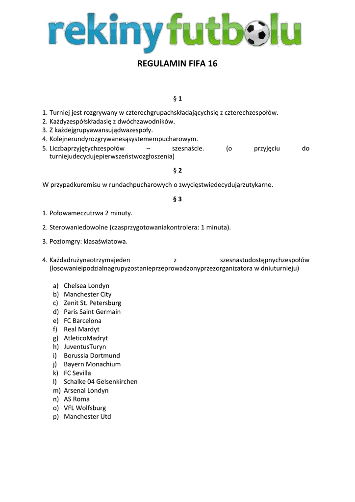 REGULAMIN FIFA 16