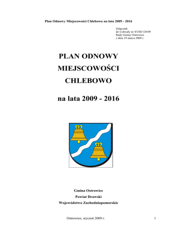Plan Odnowy Miejscowości Chlebowo na lata 2009 - 2016 Załącznik do Uchwały nr XVIII/120/09 Rady Gminy Ostrowice z dnia 19 marca 2009 r. PLAN ODNOWY MIEJSCOWOŚCI CHLEBOWO na lata 2009 - 2016 Gmina Ostrowice Powiat Drawski Województwo Zachodniopomorskie Ostrowice, styczeń 2009 r. 1 Plan Odnowy Miejscowości Chlebowo na lata 2009 - 2016 SPIS TREŚCI I. Wstęp……………………………………………………3 II. Charakterystyka miejscowości………………………….4 1. Ludność 2. WaŜniejsze drogi 3. Instytucje 4. Działalność kulturalna i sportowa 5. PołoŜenie komunikacyjne 6. Gospodarka 7. Zabytki III. PołoŜenie………………………………………….....….5 IV. Historia- Nowe Worowo dawniej……………..………..6 V. Analiza zasobów miejscowości………………………...7 VI. Diagnoza moŜliwości rozwojowych miejscowości….....9 VII. Analiza SWOT…………………………………………10 VIII. Wizja rozwoju miejscowości…………………….…..…12 IX. WdraŜanie i monitoring……………………………...…13 X. Opis przedsięwzięć przewidzianych do realizacji……...14 XI. Opis i harmonogram planowanego przedsięwzięcia…...15 XII. Szczegółowy harmonogram działań………………....…17 Ostrowice, styczeń 2009 r. 2 Plan Odnowy Miejscowości Chlebowo na lata 2009 - 2016 I. Wstęp: • Chlebowo jest miejscowością tworzącą sołectwo, jest to jedna ze średnich miejscowości Gminy Ostrowice, licząca ok. 160 mieszkańców. Wieś Chlebowo połoŜona jest w południowo - wschodniej części gminy i przebiega przez nią droga powiatowa nr 1963Z łącząca drogę wojewódzką nr 173 z drogą powiatową nr 1965Z. • Mieszkańcy są dumni ze swojej miejscowości. Chcą Ŝyć w atrakcyjnej, ładnej i przyjaznej wsi. Poprawiając warunki swojego zamieszkania i rozwijając swoją wieś, nie chcą stracić nic z jej kameralności i uroku, a przy okazji zintegrować się wspólnie działając. • Chlebowo połoŜone jest w środkowej części województwa zachodniopomorskiego w powiecie drawskim. Obszar miejscowości leŜy na Pojezierzu Drawskim. Tutaj przebiega granica Drawskiego Parku Krajobrazowego. • Plan Odnowy Miejscowości ma za zadanie pobudzić mieszkańców do wspólnego działania na rzecz Chlebowa. Plan jest dokumentem strategicznym, stworzonym przy udziale mieszkańców. Określa najwaŜniejsze działania, które sami zainteresowani uznali za istotne dla swojej miejscowości oraz które pomogą im rozwiązać problemy, pokonać bariery i osiągnąć stawiane sobie przez nich cele. Proponowane przedsięwzięcia mieszkańcy uznali za moŜliwe do zrealizowania, przy załoŜeniu takŜe ich własnej aktywności oraz przy zaangaŜowaniu władz samorządowych Gminy Ostrowice. Plan Odnowy Miejscowości pozwolił takŜe na uświadomienie sobie przez mieszkańców ich roli w tworzeniu pomysłów na własny rozwój i poprawę warunków Ŝycia. • Plan Odnowy Miejscowości powstał w wyniku dyskusji na zebraniach wiejskich, po konsultacji Rady Sołeckiej z mieszkańcami. • Plan Odnowy Miejscowości ma być między innymi załącznikiem do projektów zgłaszanych w celu uzyskania pomocy finansowej w ramach Programu Rozwoju Obszarów Wiejskich na lata 2007 – 2013. Plan Odnowy Miejscowości Chlebowo dotyczy kilku najbliŜszych lat. W okresie tym podejmowane będą określone – z uwagi na zaplanowane cele i priorytety rozwojowe – działania inwestycyjne, a takŜe inne o charakterze rekreacyjno- wypoczynkowym (np. imprezy). Podjęcie się realizacji danego zadania poprzedzone zostanie przygotowaniem niezbędnych opisów i uzasadnień realizacji danego zadania, opracowaniem zakresu rzeczowego, określeniem kosztów i terminów realizacji. Tak przygotowane i określone zadania będą przyjmowane przez Ostrowice, styczeń 2009 r. 3 Plan Odnowy Miejscowości Chlebowo na lata 2009 - 2016 zebrania wiejskie i będą stanowić kolejne załączniki w formie aneksów do niniejszego Planu. • Opracowany Plan Odnowy Miejscowości Chlebowo wraz z opisem danego zadania stanowić będzie nierozerwalny załącznik składanego o dofinansowanie wniosku do instytucji finansujących. II. Charakterystyka miejscowości Podstawowe dane: Liczba ludności na dzień 31.12.2008 r.: W miejscowości Chlebowo mieszka 161 osób, w tym: WIEK LICZBA MIESZKAŃCÓW Do 18 roku Ŝycia 55 19 – 60 lat 81 PowyŜej 60 lat 25 Ogółem 161 Źródło: Ewidencja Ludności Urzędu Gminy Ostrowice WaŜniejsze drogi: Droga powiatowa nr 1963Z łącząca drogę wojewódzką nr 173 z drogą powiatową nr 1965Z. Pozostałe szlaki komunikacyjne na obszarze gminy, to drogi powiatowe, uzupełniane przez drogi gminne o łącznej długości 32 km. Instytucje: Na terenie miejscowości Chlebowa znajdują się: • Kościół Rzymskokatolicki, • Świetlica wiejska, • Jednostka Ochotniczej StraŜy PoŜarnej. Działalność kulturalna i sportowa: Ostrowice, styczeń 2009 r. 4 Plan Odnowy Miejscowości Chlebowo na lata 2009 - 2016 Jedyną funkcjonującą instytucją kultury jest Świetlica wiejska, którą opiekuje się społecznie Rada Sołecka. Zajmuje się ona równieŜ organizacją imprez kulturalno – rozrywkowych dla dzieci i młodzieŜy oraz organizacją ferii zimowych dla dzieci. Rada Sołecka chętnie organizuje imprezy okolicznościowe dla dorosłych takie jak: Sylwester, zabawy karnawałowe, festyny rodzinne i inne. W miejscowości znajduje się boisko do piłki noŜnej oraz boisko do piłki siatkowej. Na boiskach sportowych sezonowo prowadzone są rozgrywki piłki siatkowej i noŜnej, których inicjatorami są mieszkańcy Chlebowa. PołoŜenie komunikacyjne: Wieś Chlebowo połoŜona jest w krainie geograficzno – przyrodniczej nazywanej Pojezierzem Drawskim. Mieszkańcy tej miejscowości poruszają się jedynie komunikacją samochodową, poniewaŜ najbliŜszą miejscowością, do której dojeŜdŜa autobus jest miejscowość Stare Worowo