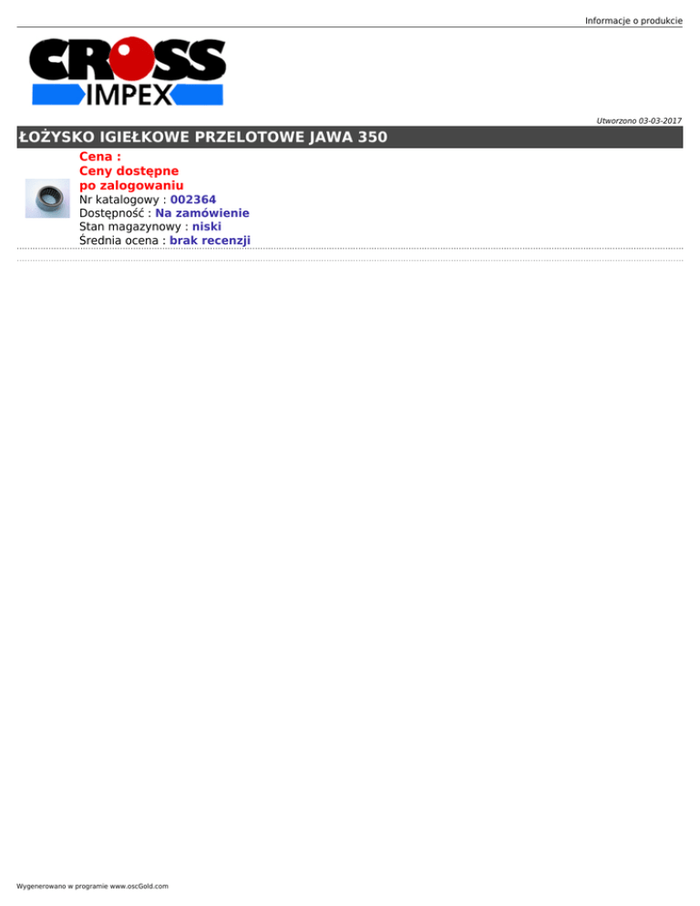 Informacje o produkcie Utworzono 03-03-2017 ŁOŻYSKO IGIEŁKOWE PRZELOTOWE JAWA 350 Cena : Ceny dostępne po zalogowaniu Nr katalogowy : 002364 Dostępność : Na zamówienie Stan magazynowy : niski Średnia ocena : brak recenzji Wygenerowano w programie www.oscGold.com