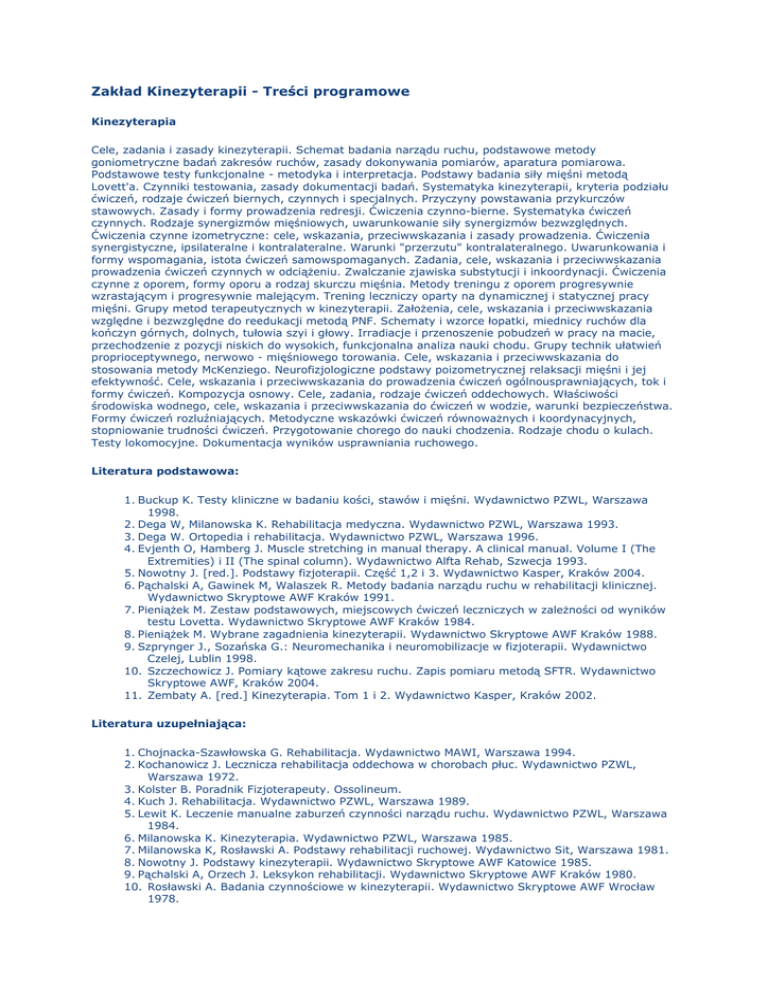 Zakład Kinezyterapii - Treści programowe