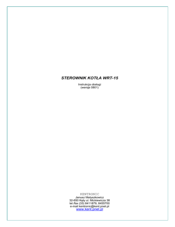 STEROWNIK KOTŁA WRT-15 Instrukcja obsługi (wersja 0801) KENTRONIC Janusz Matyszkowicz 32-650 Kęty ul. Mickiewicza 38 tel./fax (33) 8411879, 8455700 e-mail [email protected] www.kent.pnet.pl Regulator *WRT-15* przeznaczony jest do stosowania w układach automatycznej regulacji temperatury, do sterowania pracą wentylatorów i podajników w kotłach na paliwo stałe oraz pomp obiegu wody c.o. i c.w.u. *WRT-15* jest elektronicznym, dwustanowym regulatorem temperatury z czterema kanałami wyjściowymi umoŜliwiającymi sterowanie czterech urządzeń (silników podajnika, wentylatora, 2 pomp). Wyłączenie kanału sterującego silnikiem podajnika, następuje wówczas, gdy temperatura rzeczywista (wody) TEMP. C.O., zmierzona zewnętrznym czujnikiem, będzie równa lub większa od wartości zadanej [Tz1] (temp. zadana wody c.o.). Kanał ten moŜe zostać włączony na stałe – dla tv=0 lub pracować cyklicznie z zadanymi czasami pracy [tw] i czasami przerw [tv]. Drugi kanał, sterujący pracą silnika nadmuchu zostaje włączony podobnie jak pierwszy kanał. Natomiast jego całkowite wyłączenie nastąpi z opóźnieniem, po zadanym czasie [tn], licząc od momentu osiągnięcia przez temperaturę rzeczywistą wartości zadanej, czyli od momentu wyłączenia podajnika. Od tego momentu obroty wentylatora zastają automatycznie zmniejszane, aŜ do zupełnego zatrzymania po czasie tn. Trzeci kanał, sterujący pracą pompy obiegu wody, pracuje niezaleŜnie od pozostałych. Włączenie następuje, gdy temperatura rzeczywista wody jest równa lub większa od wartości zadanej [Tp] (temp. zadana pompy). Wyłączony zostaje, gdy temperatura wody obniŜy się o 2oC poniŜej wartość Tp. Czwarty kanał steruje pompą ciepłej wody uŜytkowej (c.w.u.) zasilającej wymiennik/zasobnik. Kanał ten związany jest z układem pomiaru temperatury TEMP. C.W.U. Jeśli temperatura zmierzona czujnikiem c.w.u. obniŜy się poniŜej wartość zadaną [Tz2] o wartość histerezy c.w.u. to wówczas zostanie włączona pompa c.w.u. i wyłączona pompa c.o. Kanał ten (sterujący pompą c.w.u.) jest kanałem priorytetowym, tzn. spadek temperatury w zasobniku (wymienniku) poniŜej wartość zadaną, zawsze spowoduje wyłączenie obiegu wody c.o. i włączenie pompy c.w.u. Włączenie pompy c.w.u. jest równoznaczne z automatycznym ustawieniem temperatury wody w kotle do poziomu o 15oC wyŜszego niŜ temperatura zadana (Tz2 + 15). Po osiągnięciu w zasobniku temperatury zadanej [Tz2] temperatura wody w kotle powraca do zadanej wartości [Tz1]. Wyłączenie (zablokowanie) tego kanału moŜliwe jest poprzez ustawienie minimalnej temp. zadanej [Tz2] lub poprzez odłączenie czujnika c.w.u. Sterownik wyposaŜony jest w układ blokady - jeŜeli w określonym czasie [to] (licząc od momentu włączenia podajnika i nadmuchu) temperatura rzeczywista obniŜy się o 3oC, wówczas regulator zostanie zablokowany (wyłączone kanały wyjściowe podajnika i nadmuchu). Włączenie blokady nastąpi równieŜ wówczas, gdy przez okres 60 minut temperatura rzeczywista nie osiągnie poziomu temperatury zadanej (gdy to>0). Powrót do normalnej pracy nastąpi po naciśnięciu przycisku wyboru parametrów pracy. Funkcja blokady moŜe zostać wyłączona, poprzez ustawienie wartości czasu włączenia blokady to=0. Stan blokady sygnalizowany jest przerywanym sygnałem dźwiękowym. System blokowania nie ma wpływu na pracę pompy c.o. Sterownik *WRT-15* posiada system automatycznego "przepalania" kotła, zabezpieczający przed wygaśnięciem, w przypadku, gdy temperatura rzeczywista przez długi okres czasu nie obniŜy się poniŜej wartość zadaną. Czas "przepalania" [tp] oraz czas przerwy pomiędzy kolejnymi włączeniami [ti] są regulowane, umoŜliwiając pracę sterownika z róŜnymi kotłami, w róŜnych warunkach. Ustawienie wartości tp=0 powoduje zablokowanie tej funkcji. Funkcja jest blokowana automatycznie przy wzroście temperatury wody powyŜej 90oC. Sterownik *WRT-15* wyposaŜony jest w programator czasowy umoŜliwiający programową zmianę temperatury wody w cyklu dziennym lub tygodniowym. Osiem kroków programowych umoŜliwia uŜytkownikowi wprowadzenie dowolnego cyklu zmian temperatury. Programowe obniŜenie temperatury sygnalizowane jest świeceniem diody LED „PROGRAM TEMP. OBN.”. Urządzenie dostarczane jest z wprowadzonym, przykładowym programem zmian temperatury, który to program uŜytkownik moŜe dowolnie zmieniać. Urządzenie *WRT-15* posiada złącze dodatkowego czujnika temperatury, mierzący temperaturę zasobnika lub podajnika. Czujnik ten zabezpiecza przed samoczynnym przedostawaniem się płomienia do podajnika i zasobnika. Przekroczenie temperatury 90oC powoduje automatyczne włączenie podajnika i przesuwanie palącego się paliwa w stronę paleniska. STEROWNIK TEMPERATURY *WRT-15* - temp. włączenia pompy c.o. - cykliczna praca podajnika (czas pracy i czas przerwy) - czas zadziałanie blokady - obroty wentylatora - opóźnienie sterowania nadmuchu w stosunku do podajnika Ręczne sterowanie kanałami wyjściowymi Funkcja „przepalania kotła” Programator czasowy umoŜliwiający zmiany temperatury w cyklu dziennym lub tygodniowym Wielogodzinna praca zegara przy braku napięcia sieciowego Funkcja blokady podajnika i nadmuchu w przypadku wygaśnięcia ognia MoŜliwość sterowania z niezaleŜnego regulatora temperatury umieszczonego w mieszkaniu Sygnalizacja akustyczna naciśnięcia klawiatury, blokady i stanów alarmowych Opis techniczny 2 tory pomiaru temperatury - temperatura wody c.o. - temperatura wymiennika c.w.u. 4 kanały wyjściowe - sterowanie silnika podajnika - sterowanie wentylatora nadmuchu - sterowanie pompy obiegu wody c.o. - sterowanie pompy c.w.u. Ogranicznik temperatury zabezpieczający system przed przegrzaniem kotła w przypadku awarii Układ nadzoru temperatury podajnika zabezpieczający przed cofaniem się ognia do zasobnika Regulacja parametrów w szerokim zakresie: - temp. 