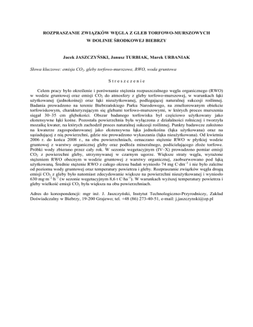 ROZPRASZANIE ZWIĄZKÓW WĘGLA Z GLEB TORFOWO