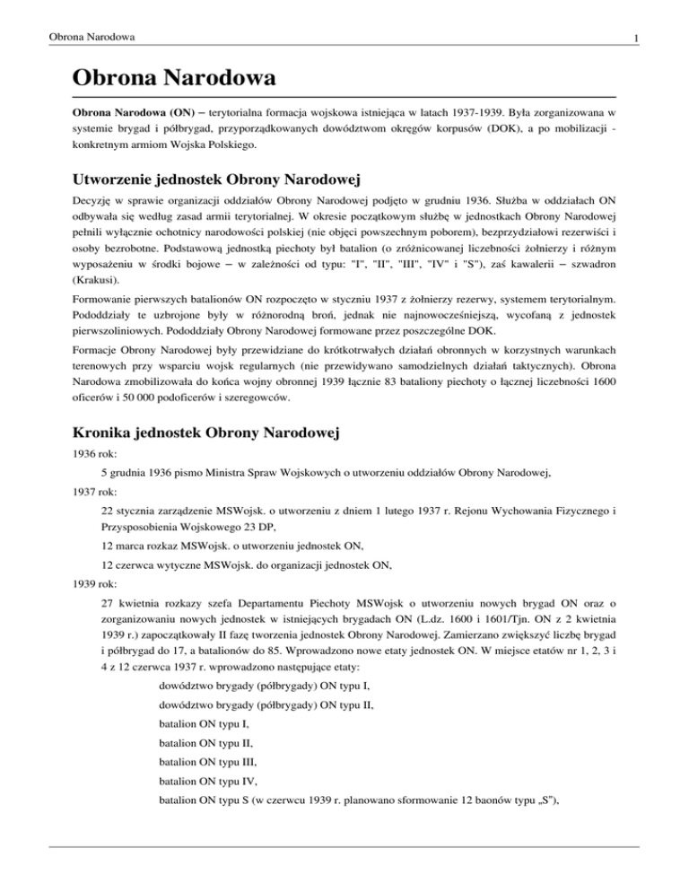 pierwszoliniowych. Pododdziały Obrony Narodowej formowane przez poszczególne DOK.