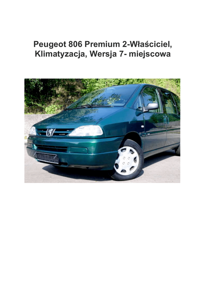 Peugeot 806 Premium 2-Właściciel, Klimatyzacja, Wersja 7