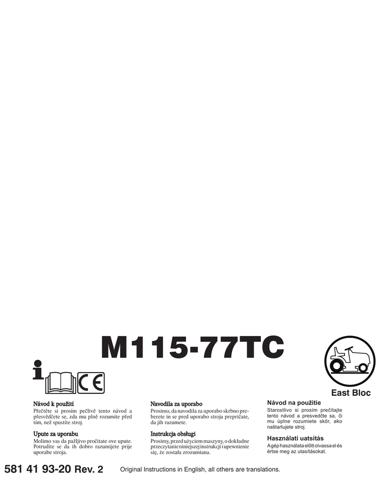 Datum kupovine, model, tip i serijski broj kosilice. Uvijek uporabljajte originalne rezervne dijelove. Za popravke strojeva u jamstvenom roku, javite se u vašu najbližu ovlaštenu servisnu radionicu