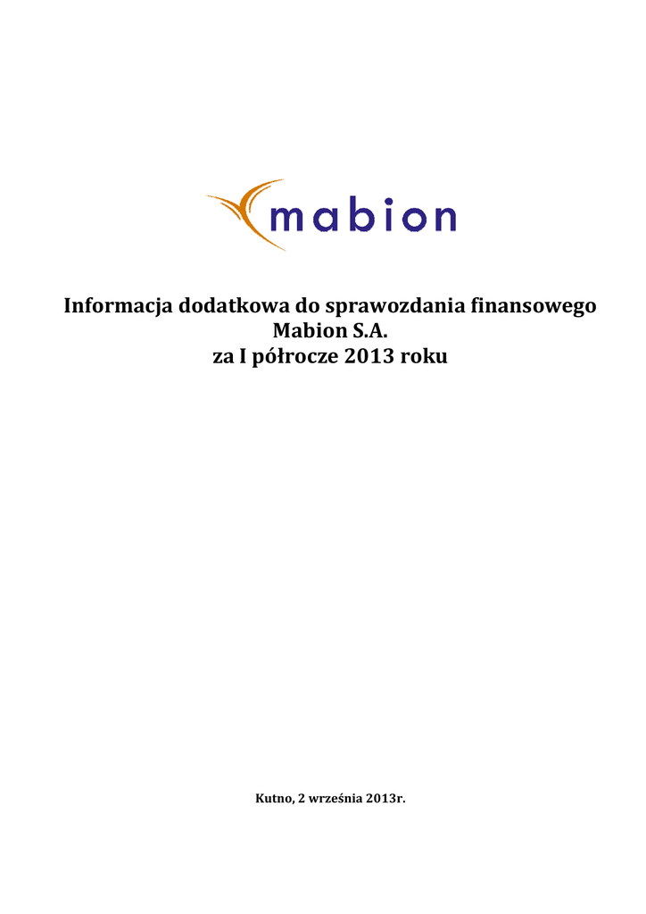 Informacja dodatkowa do sprawozdania finansowego Mabion S.A. za I półrocze 2013 roku