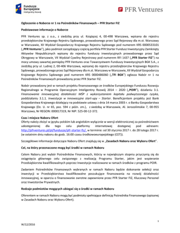 internetowej dostępnej pod adresem: http://www.pfrventures.pl/pl/fundusze/pfr-starter-fiz/.
