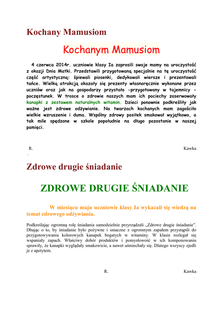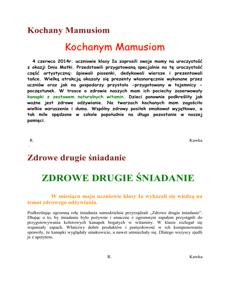Kochanym Mamusiom ZDROWE DRUGIE ŚNIADANIE
