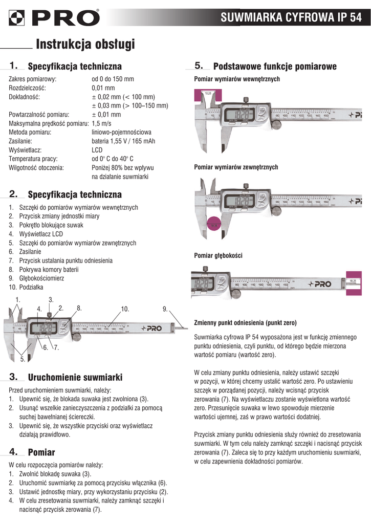 Suwmiarka cyfrowa IP 54_instrukcja