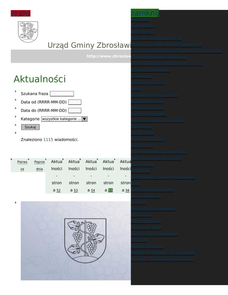 zamknij do góry Samorząd Rada Gminy Wójt Gminy Jednostki podległe Gminie Gminny Ośrodek Pomocy Społecznej Urząd Gminy Zbrosławice Gminny Zespół Obsługi Placówek Oświatowych http://www.zbroslawice.pl/main/aktualnosci/printpdf/st:55 Gminna Biblioteka Publiczna Gminny Zakład Komunalny Sp. z o.o. Szkoły i Przedszkola Aktualności Informacje Edukacja i Kultura Sport Szukana fraza Współpraca zagraniczna Data od (RRRR-MM-DD) Gazetka Gminna Sztab Kryzysowy Data do (RRRR-MM-DD) 1 procent podatku Kategorie wszystkie kategorie ... ▼ Nieruchomości na sprzedaż Inwestycje Szukaj AKCJA ZIMA Gmina i Sołectwa Znaleziono 1115 wiadomości. Plan Gminy Gminna ewidencja zabytków Sołectwa w naszej Gminie Aktua Aktua Aktua Następ Ostatni Komunikaty lności lności lności na a Urzędowe - Komunikaty Sztabu kryzysowego Pierws Poprze Aktua Aktua Aktua Aktua za dnia lności lności lności lności - - - - stron stron stron stron stron Innestron a 52 a 53 a 54 a społeczne a 56 Konsultacje a 57 a 58 55 stron Akcje wyborcze Kontakt Gospodarka Odpadami Deklaracja Harmonogramy Kalkulator opłat Wyszukiwarka odpadów MPSZOK Punkty Apteczne Rejestr Działalności Regulowanej Kontakt - Gospodarka odpadami 15 STY 2014 Rozstrzygnięcie otwartego konkursu ofert kategoria: Komunikaty urzędowe Rozstrzygnięcie otwartego konkursu ofert na realizację zadania publicznego Gminy Zbrosławice w 2014 roku w zakresie wspierania i upowszechniania kultury fizycznej. Dokument do pobrania tutaj 09 STY 2014 Mobilne punkty zbiórki odpadów komunalnych kategoria: Odpady komunalne Informujemy, że mobilne punkty zbiórki odpadów komunalnych (MPZOK) w 2014 r. znajdują się w:Łubiu przy ul. 1 Maja/ul. Pyskowicka - w każdą 1 sobotę miesiącaCzekanowie Śląskim – przejazd kolejowy (przy dawnej stacji PKP) w każdą 2 sobotę miesiącaWieszowie przy świetlicy gminnej przy ul. Bytomskiej w każdą 3 sobotę miesiącaZbrosławicach - przy bazie ZGKiM ul. Oświęcimska - w każdą 4 sobotę miesiąca.Punkty czynne są w 09 STY 2014 Koncert noworoczny WOŚP 07 STY 2014 Spotkanie noworoczne w Ptakowicach 07 STY 2014 kategoria: Spotkanie z pracownikami ZUS Komunikaty urzędowe Platforma Usług Elektronicznych (PUE) to zestaw nowoczesnych usług dla wszystkich klientów ZUS. Jej sercem jest portal internetowy pue.zus.pl. Dzięki tej wygodnej formie kontaktu z ZUS można zrealizować większość spraw związanych z ubezpieczeniami społecznymi bez wychodzenia z domu przez internet. W ten sposób nie tylko uda się uzyskać informacje o ubezpieczeniach, świadczeniach i płatnościach czy sprawdzić wszelkie swoje 02 STY 2014 Ogłoszenie wyniku ofert na realizację zadań publicznych w 2014 kategoria: Komunikaty urzędowe Ogłoszenie wyniku z przeprowadzonego otwartego konkursu ofert na realizację zadań publicznych w 2014 roku w zakresie wspierania zadań związanych z ochroną i promocją zdrowia na terenie Gminy Zbrosławice Wójt Gminy Zbrosławice informuje, że w wyniku przeprowadzonego postępowania konkursowego na realizację zadań publicznych w 2014 roku w zakresie wspierania zadań związanych z ochroną i promocją zdrowia na terenie Gminy 30 GRU 2013 Królestwo miłości 30 GRU 2013 Zmiany na platformie ePuap kategoria: Komunikaty urzędowe W dniu dzisiejszym, na polecenie Ministerstwa Administracji i Cyfryzacji wykonana została zmiana konfiguracji Elektronicznej Skrzynki Podawczej na platformie ePuap. Zgodnie z przesłaną dokumentacją wszystkie dotychczasowe usługi zostały odinstalowane i aktualnie trwają prace nad konfiguracją nowej wersji (ESP v. 3.0). Adres skrytki ESP UG Zbrosławice uległ zmianie na następujący: /9r7xan12ke/SkrytkaESP Podobne zmiany 27 GRU 2013 kategoria: Harmonogram wywozu odpadów w 2014 roku Odpady komunalne Pliki do pobrania: Harmonogram 2014 r. - daty odbioru odpadów Harmonogram 2014 r. - podział miejscowości na ulice Harmonogram 2014 r. - Wspólnoty mieszkaniowe PRZEWODNIK PO NOWYM SYSTEMIE GOSPODAROWANIA ODPADAMI W 2014 R Odbiór odpadów z kubłów i worków odbywać się będzie w tym samym terminie. Urząd Gminy Zbrosławice przypomina, iż właściciel posesji jest zobowiązany do wystawienia pojemnika na odpady oraz worków przed 24 GRU 2013 Życzenia świąteczne Pierws Poprze Aktua Aktua Aktua Aktua Aktua Aktua Aktua Następ Ostatni za dnia lności lności lności lności lności lności lności na a - - - - - - - stron stron stron stron stron stron stron a 52 a 53 a 54 a a 56 a 57 a 58 55