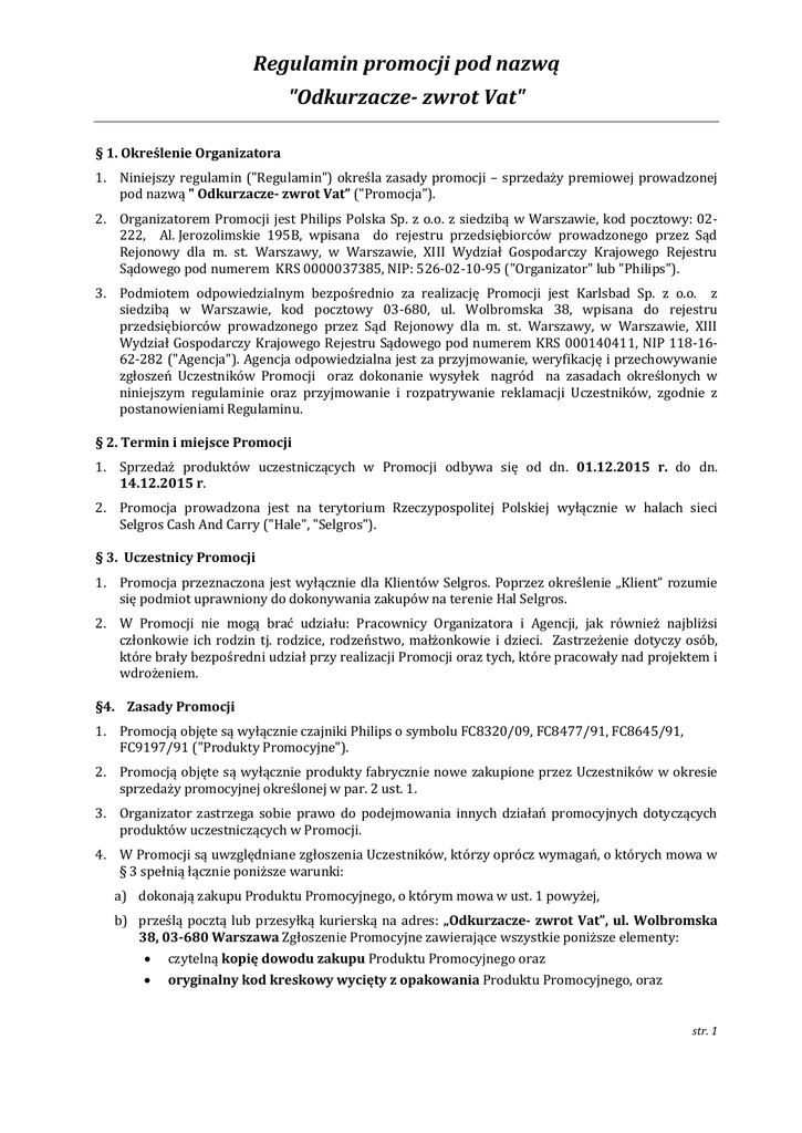 Sądowego pod numerem KRS 0000037385, NIP: 526-02-10-95 ("Organizator" lub "Philips").
