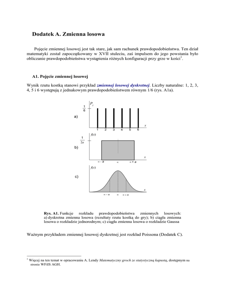 4, 5 i 6 występują z jednakowym prawdopodobieństwem równym 1/6 (rys. A1a).