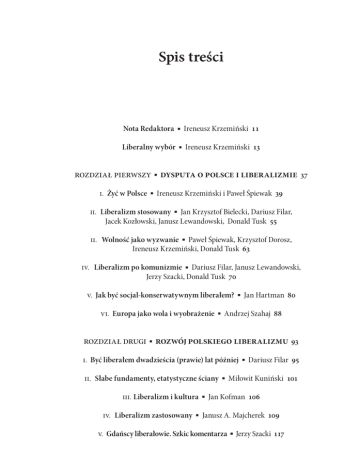 Spis treści Nota Redaktora ■ Ireneusz Krzemiński 11 Liberalny wybór ■ Ireneusz Krzemiński 13 rozdział pierwszy ■ dysputa o polsce i liberalizmie 37 i. Żyć w Polsce ■ Ireneusz Krzemiński i Paweł Śpiewak 39 ii. Liberalizm stosowany ■ Jan Krzysztof Bielecki, Dariusz Filar, Jacek Kozłowski, Janusz Lewandowski, Donald Tusk 55 ii. Wolność jako wyzwanie ■ Paweł Śpiewak, Krzysztof Dorosz, Ireneusz Krzemiński, Donald Tusk 63 iv. Liberalizm po komunizmie ■ Dariusz Filar, Janusz Lewandowski, Jerzy Szacki, Donald Tusk 70 v. Jak być socjal-konserwatywnym liberałem? ■ Jan Hartman 80 vi. Europa jako wola i wyobrażenie ■ Andrzej Szahaj 88 rozdział drugi ■ rozwój polskiego liberalizmu 93 i. Być liberałem dwadzieścia (prawie) lat później ■ Dariusz Filar 95 ii. Słabe fundamenty, etatystyczne ściany ■ Miłowit Kuniński 101 iii. Liberalizm i kultura ■ Jan Kofman 106 iv. Liberalizm zastosowany ■ Janusz A. Majcherek 109 v. Gdańscy liberałowie. Szkic komentarza ■ Jerzy Szacki 117 6 Liberalizm polski vi. Liberałowie ■ Witold Gadomski 121 vii. Liberałowie mimo woli ■ Marcin Król 131 viii. Konsumowanie wolności ■ Andrzej Waśkiewicz 134 ix. Koniec postkomunizmu ■ Jadwiga Staniszkis 139 x. Kiedy koniec postkomunizmu ■ Janusz A. Majcherek 144 xi. Polska solidarna, Polska liberalna ■ Ireneusz Krzemiński 155 xii. Czy nadal istnieje podział postkomunistyczny? ■ Ireneusz Krzemiński, Mirosława Grabowska 159 xiii. Liberałowie po czterech latach ■ Paweł Śpiewak 167 xiv. Edukacja liberalna ■ Paweł Śpiewak 172 xv. Liberalizm strachu i strach przed liberalizmem ■ Szymon Wróbel 183 xvi. Dyskretny urok liberalizmu ■ Jarosław Makowski, Stanisław Filipowicz 193 xvii. Nieporozumienia wokół liberalizmu ■ Andrzej Walicki 200 rozdział trzeci ■ jaki kapitalizm? 211 i. Czy w Polsce jest kapitalizm ■ Michał Zieliński 213 ii. Jaki kapitalizm? ■ Jan Szomburg 217 iii. Duchowe korzenie kapitalizmu ■ Dariusz Filar 229 iv. Moralność i demokratyczny kapitalizm ■ Michael Novak, Maciej Zięba 233 v. Demokracja nie zastąpi kapitalizmu ■ Leszek Balcerowicz 237 vi. Na rozdrożu ■ Edmund Mokrzycki 247 Spis treści vii. Między bezsilnością a autorytaryzmem ■ Jan Maria Rokita 253 viii. Szukając zadowolonych ■ Witold Gadomski 256 ix. Trzecia droga. Gorzka satysfakcja liberała ■ Janusz Lewandowski 259 x. Pochwała państwowego interwencjonizmu ■ Andrzej Koraszewski 265 xi. Przeciwko apologii państwa ■ Witold Gadomski, Leszek Balcerowicz 270 xii. Gdzie jest duch kapitalizmu demokratycznego ■ Janusz Lewandowski 277 xiii. Między zieloną wyspą a dryfującą krą ■ Dariusz Filar 281 xiv. Fundusz Emerytalno-Rentowy ■ Krzysztof Kilian 289 rozdział czwarty ■ jaka demokracja? 295 i. Po trzecich wyborach ■ Mirosława Grabowska, Ireneusz Krzemiński, Paweł Śpiewak 297 ii. Świat wypadł z zawiasów ■ Andrzej Rychard 305 iii. Czy zwyciężył socjalizm? ■ Ireneusz Krzemiński 311 iv. Gdańsk i Ateny ■ Bronisław Świderski 316 v. Poprawianie ordynacji ■ Andrzej Szahaj, Andrzej Zybertowicz 324 vi. Demokracja wobec globalizacji. Kilka refleksji na temat globalnych dylematów zwycięskiej demokracji ■ Zbigniew Brzeziński 328 vii. III czy IV Rzeczpospolita ■ Aleksander Hall, Paweł Śpiewak 336 viii. Nowy początek i powrót do normalności ■ Andrzej Waśkiewicz 340 ix. Liberalizm, czyli spór ze wszystkimi ■ Michał Warchala 346 x. Liberalizm, realizm, pragmatyzm ■ Janusz A. Majcherek 356 7 8 Liberalizm polski xi. Płomień polskiej kontrrewolucji ■ Paweł Marczewski 364 rozdział piąty ■ jakie społeczeństwo? 369 i. Republika obywateli? ■ Roman Wapiński 371 ii. Klasa średnia i społeczeństwo ■ Jacek Kurczewski 382 iii. Przemiana świata społecznego? ■ Edmund Mokrzycki 386 iv. Kwestia formy. Rzecz o inteligencji ■ Paweł Śpiewak 388 v. Społeczeństwo obywatelskie ■ Jerzy Szacki 397 vi. Republika obywateli ■ Jerzy Szacki 402 vii. Społeczeństwo obywatelskie ■ Andrzej Siciński 410 viii. Problem z Papieżem ■ Ireneusz Krzemiński 416 ix. Mroczna moralistyka ■ Paweł Śpiewak 424 x. Dyskusja o Polsce, Polakach i polskości ■ Jerzy Szacki 427 xi. Pisanie Polski ■ Leszek Szaruga 431 xii. Czujność historyczna ■ Bronisław Łagowski 438 xiii. Ojczyzny Polaków ■ Roman Wapiński, Iza Chruślińska, Piotr Tyma 444 xiv. Był sobie Gdańsk ■ Zbigniew Żakiewicz, Donald Tusk, Paweł Huelle 453 xv. Dekada niemiecka ■ Piotr Buras, Marek A. Cichocki, Basil Kerski, Krzysztof Rak, Henning Tewes, Kazimierz Wóycicki 466 xvi. Pamięć Zagłady ■ Barbara Krawcowicz 480 xvii. Pamięć polska – pamięć żydowska ■ Ireneusz Krzemiński 485 xviii. Zawsze to samo ■ Michał Głowiński 496 Spis treści xix. Ilu nas z Jedwabnego? ■ Ireneusz Krzemiński 512 aneks 527 Gdańscy liberałowie w latach 1980–1993 ■ Konrad Knoch 529 Kalendarium liberałów ■ Konrad Knoch 547 dokumenty programowe 551 i. Deklaracja ideowa Gdańskiego Towarzystwa Społeczno-Gospodarczego „Kongres Liberałów” 553 ii. Od liberalnego rządu do liberalnej polityki. Uchwała Kongresu Liberalno-Demokratycznego 555 iii. Karta Polskiego Kapitału 559 iv. Tezy dla Kongresu Liberalno-Demokratycznego 560 v. Tożsamość Kongresu Liberalno-Demokratycznego. Propozycje 562 vi. Tezy sobieszewskie. Liberałowie wobec rzeczywistości 564 vii. Program cetniewski. Polska: ku demokratycznemu kapitalizmowi 567 Noty o autorach 573 9
