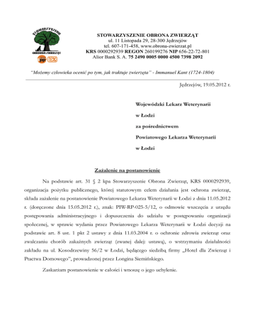 Zażalenie - Stowarzyszenie Obrona Zwierząt