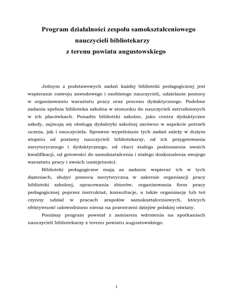 Program działalności zespołu samokształceniowego nauczycieli