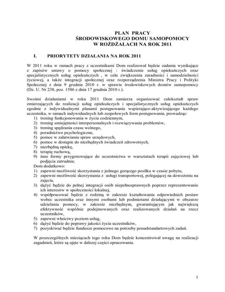 plan pracy środowiskowego domu samopomocy w rożdżałach na