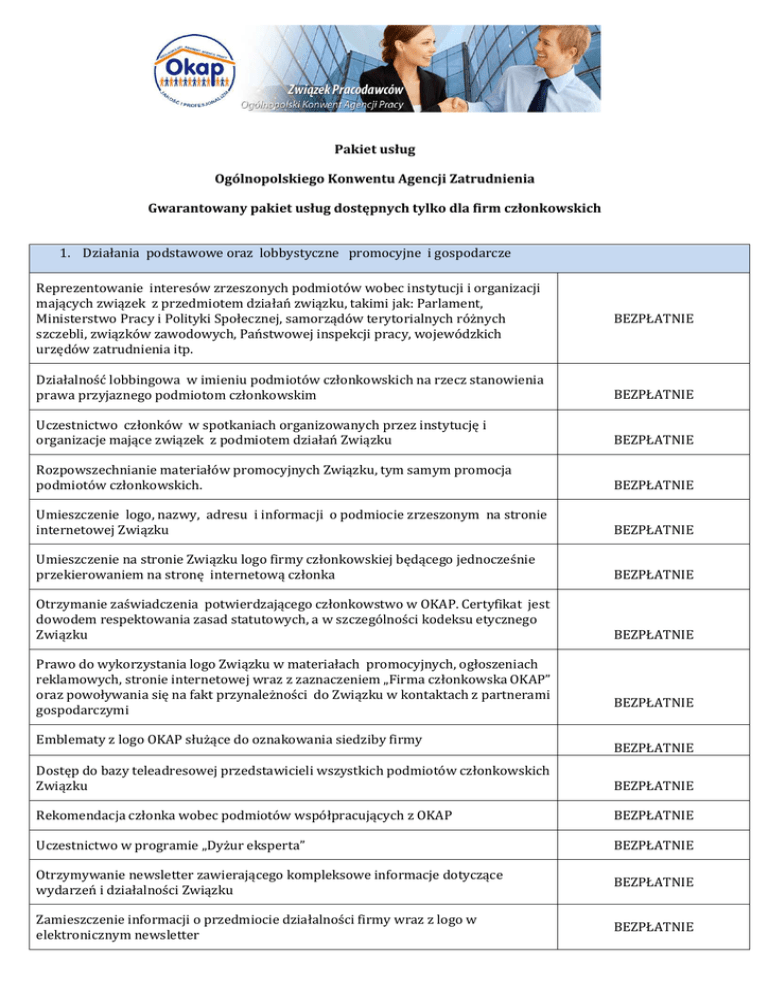 pakiet usług - Ogólnopolski Konwent Agencji Pracy