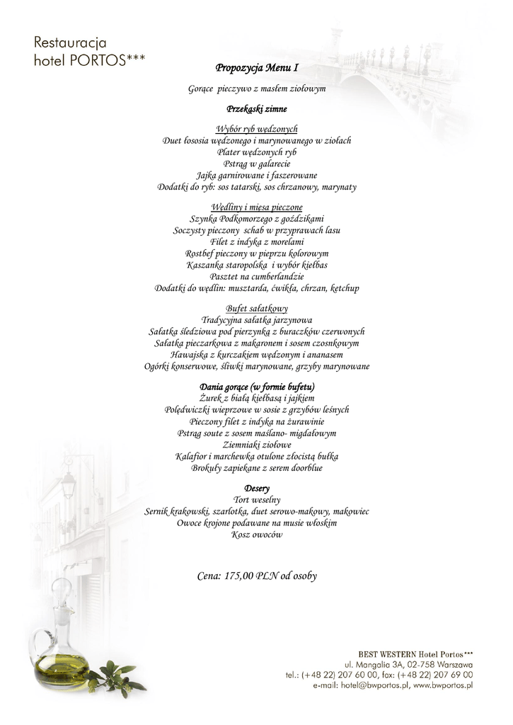 Propozycja Menu I Cena: 175,00 PLN od osoby