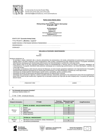 Karta oceny biznes planu