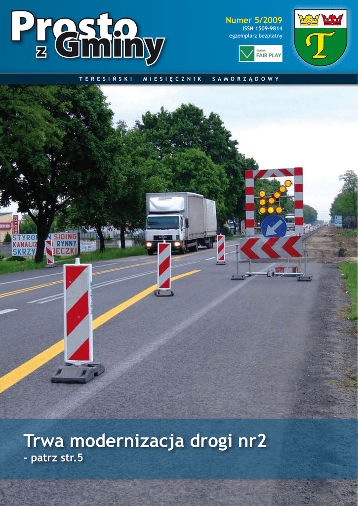 Numer 5/2009 ISSN 1509-9814 egzemplarz bezpłatny T E R E S I Ń S K I M I E S I Ę C Z N I K S A M O R Z Ą D O W Y Trwa modernizacja drogi nr2 - patrz str.5 TERESIŃSKI MIESIĘCZNIK SAMORZĄDOWY Gazyfikacja – powstało Biuro Obsługi Klienta w Teresinie! W środę 20 maja mieszkańcy gminy Teresin uczestniczyli w konferencji dotyczącej gazyfikacji Teresina i okolic. Na liczne pytania przybyłych odpowiadali włoscy i polscy przedstawiciele spółki SIME Polska, która realizuje projekt dostawy gazu ziemnego do gospodarstw indywidualnych jak i przedsiębiorstw na terenie naszej gminy. Istotną informacją jest fakt, iż SIME Polska uruchomiła Biuro Obsługi Klienta, które znajduje się w budynku Spółdzielni Gminnej w Teresinie przy ul. Szymanowskiej 19. Biuro czynne jest we wtorki i czwartki w godz.13.00 – 18.00, nr tel. (046) 861-44-54. Pracownicy Biura udzielają wszelkich informacji oraz pomogą załatwić formalności związane z indywidualnymi przyłączami do gazociągu. /red/ Strażackie święto Gminne uroczystości z okazji tegorocznego „Dnia Strażaka” rozpoczęły się w sobotę 2 maja zbiórką pocztów sztandarowych i pododdziałów Ochotniczych Straży Pożarnych z gminy Teresin na placu apelowym w Niepokalanowie. Zaraz potem nastąpił przemarsz do Bazyliki Mniejszej, gdzie odprawiona została uroczysta Msza święta w intencji strażaków. Honorowymi gośćmi obchodów Święta Straży Pożarnej w gminie Teresin byli m.in.: Starosta Tadeusz Koryś, Komendant Powiatowy Państwowej Straży Pożarnej Paweł Kubiak, z-ca komendanta powiatowego PSP w Sochaczewie Dariusz Wypierowski, Prezes Zarządu Gminnego Ochotniczej Straży Pożarnej Andrzej Tkaczyk, zastępca Wójta Gminy Teresin Marek Jaworski, Przewodniczący Rady Gminy Teresin Bogdan Linard oraz zastępca Przewodniczącego Rady Lech Kaźmierczak. Nie mogło również zabraknąć Henryka Kucharskiego, żywej legendy Ochotniczej Straży Pożarnej w Teresinie. Tradycyjnie już Święto Strażaka stało się dniem refleksji i podsumowań, a przede wszystkim dniem radości z osiągnięć i dokonań w służbie strażackiej. W ubiegłym roku strażacy z jednostek OSP w gminie Teresin wyjeżdżali do 49 pożarów, 88 miejscowych zagrożeń i 10 fałszywych alarmów. Wszystkim Druhom i Druhnom Ochotniczej Straży Pożarnej dziękujemy za ofiarną służbę na rzecz mieszkańców naszej Gminy i życzymy wszelkiej pomyślności oraz aby ta trudna służba była dla Was źródłem satysfakcji i powodem do dumy. Redakcja 2 Numer 5/2009 TERESIŃSKI MIESIĘCZNIK SAMORZĄDOWY Aktualne inwestycje gminne 1) „Modernizacja dróg gminnych zlokalizowanych na terenie Gminy Teresin” Umowa podpisana z „DROGBUD” Podkarpacki Holding Budowy Dróg Sp. z o.o. z siedzibą przy ul. 1 Maja 42, 38 – 100 Strzyżów Za wykonanie przedmiotu Umowy określono wynagrodzenie kosztorysowe w wysokości 1.145.213,24 złotych netto + 22 % podatku VAT, brutto 1.397.160,15 złotych (słownie złotych: jeden milion trzysta dziewięćdziesiąt siedem tysięcy sto sześćdziesiąt 15/100 złotych). Termin realizacji zamówienia - od dnia podpisania umowy do dnia 31 sierpnia 2009 roku. działalność pod nazwą „RENAL BUD” Adam Cebula, z siedzibą przy ul. Spacerowej 4, 05 – 870 Błonie Za wykonanie przedmiotu Umowy określono wynagrodzenie kosztorysowe w wysokości 76.224,09 złotych netto + 22 % podatku VAT, brutto 92.993,39 złotych (słownie złotych: dziewięćdziesiąt dwa tysiące dziewięćset dziewięćdziesiąt trzy 39/100 złotych). Termin realizacji zamówienia - od dnia podpisania umowy do dnia 14 czerwca 2009 roku. 4) „Przebudowa budynku strażnicy Ochotniczej Straży Pożarnej w Szymanowie – III etap” 500 Sochaczew Za wykonanie przedmiotu Umowy określono wynagrodzenie kosztorysowe w wysokości 158.382,55 złotych netto + 22 % podatku VAT, brutto 193.226,71 złotych (słownie złotych: sto dziewięćdziesiąt trzy tysiące dwieście dwadzieścia sześć 71/100 złotych). Termin realizacji zamówienia - od dnia podpisania umowy do dnia 31 sierpnia 2009 roku. 6) „Termomodernizacja budynku Teresińskiego Ośrodka Kultury w Teresinie” 2) „Rozbudowa i przebudowa budynku Ośrodka Zdrowia w Szymanowie – II etap” Umowa podpisana z Zakładem Remontowo – Budowlanym „REM – BUD” J.Karowski, A. Pikalski spółka jawna z siedzibą przy ul. Jachowicza 2, 09 – 400 Płock Za wykonanie przedmiotu Umowy określono wynagrodzenie kosztorysowe w wysokości 330.000,53 złotych netto + VAT, brutto 397.315,54 złotych (słownie złotych: trzysta dziewięćdziesiąt siedem tysięcy trzysta piętnaście 54/100 złotych). Termin realizacji zamówienia - od dnia podpisania umowy do dnia 30 września 2009 roku. 3) „Budowa budynku Ochotniczej Straży Pożarnej w Teresinie – III etap” Umowa podpisana z Adamem Cebulą przedsiębiorcą prowadzącym Umowa podpisana z Krzysztofem Guldzińskim przedsiębiorcą prowadzącym działalność gospodarczą pod nazwą Usługi Remontowo – Budowlane Krzysztof Guldziński z siedzibą przy ul. B. Krzywoustego 11, 26 – 300 Opoczno Za wykonanie przedmiotu Umowy określono wynagrodzenie kosztorysowe w wysokości 76.987,78 złotych netto + 22 % podatku VAT, brutto 93.925,09 złotych (słownie złotych: dziewięćdziesiąt trzy tysiące dziewięćset dwadzieścia pięć 09/100 złotych). Termin realizacji zamówienia - od dnia podpisania umowy do dnia 14 czerwca 2009 roku. 5) „Budowa chodnika w miejscowości Dębówka – od km 0+000 do km 1+054” 7) „Docieplenie ścian i przebudowa dachu w budynku Gminnego Zakładu Gospodarki Komunalnej oraz Przedszkola, przy Al. XX-lecia 13 w Teresinie” Termin realizacji zamówienia - od dnia podpisania umowy do dnia 15 października 2009 roku. 8) „Przebudowa drogi gminnej (ul. Skośna) w miejscowości Paprotnia” Termin realizacji zamówienia - w terminie 60 dni od dnia podpisania umowy. Umowa podpisana z Arkadiuszem Siekierskim przedsiębiorcą