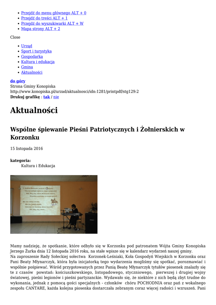 Przejdź do menu głównego ALT + 0 Przejdź do treści ALT + 1 Przejdź do wyszukiwarki ALT + W Mapa strony ALT + 2 Close Urząd Sport i turystyka Gospodarka Kultura i edukacja Gmina Aktualności do góry Strona Gminy Konopiska http://www.konopiska.pl/urzad/aktualnosci/idn:1281/printpdf/stg129:2 Drukuj grafikę : tak / nie Aktualności Wspólne śpiewanie Pieśni Patriotycznych i Żołnierskich w Korzonku 15 listopada 2016 kategoria: Kultura i Edukacja Mamy nadzieję, że spotkanie, które odbyło się w Korzonku pod patronatem Wójta Gminy Konopiska Jerzego Żurka dnia 12 listopada 2016 roku, na stałe wpisze się w kalendarz wydarzeń naszej gminy. Na zaproszenie Rady Sołeckiej sołectwa Korzonek-Leśniaki, Koła Gospodyń Wiejskich w Korzonku oraz Pani Beaty Młynarczyk, która była inicjatorką tego wydarzenia mogliśmy się spotkać, porozmawiać i wspólnie pośpiewać. Wśród przygotowanych przez Panią Beatę Młynarczyk tytułów piosenek znalazły się te z czasów powstań: kościuszkowskiego, listopadowego, styczniowego, pierwszej i drugiej wojny światowej, pieśni legionów i pieśni partyzanckie. Wydawało się, że niektóre z nich będą zbyt trudne do wykonania, jednak z pomocą gości specjalnych - członków chóru POCHODNIA oraz pań z wokalnego zespołu CANTARE, każda kolejna piosenka dostarczała zebranym coraz więcej radości i wzruszeń. Pani Beata osobiście akompaniowała do śpiewu i przed każdą pieśnią zaskakiwała zebranych przygotowanymi wcześniej ciekawostkami. Myśl, która nasunęła się uczestnikom „patriotycznego śpiewania” to konieczność zarażania podobnymi inicjatywami mieszkańców naszej gminy – w tym młodzieży, ponieważ : „Takie będą Rzeczypospolite jakie ich młodzieży chowanie” (Kanclerz Jan Zamoyski). Zaproszenie przyjęło wiele osób, a wśród nich m.in. Zastępca Wójta Gminy Konopiska Pani Zofia Kuśmierska, Przewodniczący Rady Gminy Konopiska Pan Edward Bałdyga. Gościnne członkinie KGW w Korzonku przygotowały na tę okazję ciasta, rogaliki, bigos i tradycyjną zalewajkę. Wspólne śpiewanie pieśni patriotycznych integruje, zatrzymuje nas na chwilę w codziennym zgiełku obowiązków, otwiera naszą wrażliwość na burzliwe losy naszej ojczyzny i wzmacnia poczucie odpowiedzialności za to co dzieje się wokół nas, co jest bardzo cenne, ponieważ: „Nasza ojczyzna zależy od nas – to nasze być i mieć” (Jan Paweł II Westerplatte 12 VI 1987 r.). Z pięknymi podziękowaniami w imieniu wszystkich, którzy mogli spędzić listopadowy wieczór w tak wyjątkowy sposób. Iwona Lisek 14 lis 2016 Wspólne śpiewanie Pieśni Patriotycznych i Żołnierskich w Korzonku Wspólne Wspólne Wspólne Wspólne Wspólne Wspólne Wspólne Wspólne Wspólne Wspólne Wspólne Wspólne Wspólne Wspólne Wspólne Wspólne Wspólne Wspólne Wspólne Wspólne śpiewanie śpiewanie śpiewanie śpiewanie śpiewanie śpiewanie śpiewanie śpiewanie śpiewanie śpiewanie śpiewanie śpiewanie śpiewanie śpiewanie śpiewanie śpiewanie śpiewanie śpiewanie śpiewanie śpiewanie Pieśni Pieśni Pieśni Pieśni Pieśni Pieśni Pieśni Pieśni Pieśni Pieśni Pieśni Pieśni Pieśni Pieśni Pieśni Pieśni Pieśni Pieśni Pieśni Pieśni Aktualności - strona 1 Aktualności - strona 2 Aktualności - strona 3 powrót do listy aktualności Patriotycznych Patriotycznych Patriotycznych Patriotycznych Patriotycznych Patriotycznych Patriotycznych Patriotycznych Patriotycznych Patriotycznych Patriotycznych Patriotycznych Patriotycznych Patriotycznych Patriotycznych Patriotycznych Patriotycznych Patriotycznych Patriotycznych Patriotycznych i i i i i i i i i i i i i i i i i i i i Żołnierskich Żołnierskich Żołnierskich Żołnierskich Żołnierskich Żołnierskich Żołnierskich Żołnierskich Żołnierskich Żołnierskich Żołnierskich Żołnierskich Żołnierskich Żołnierskich Żołnierskich Żołnierskich Żołnierskich Żołnierskich Żołnierskich Żołnierskich