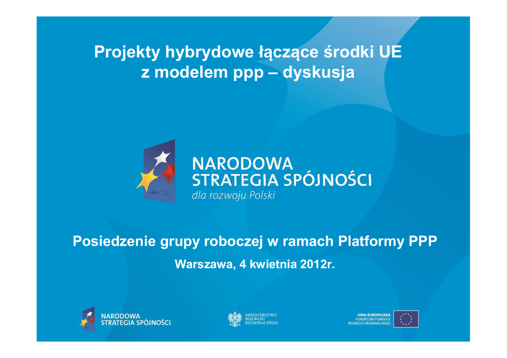 Projekty hybrydowe łączące środki UE z modelem ppp – dyskusja Posiedzenie grupy roboczej w ramach Platformy PPP Warszawa, 4 kwietnia 2012r. Łączenie funduszy UE z modelem PPP Kwestie do omówienia: • Zastąpienie wkładu publicznego przez partnera prywatnego w projekcie UE; • Możliwość zawarcia umowy prywatnym po podpisaniu dofinansowanie; z wkład partnerem umowy o • Zmiany do projektu UE niezbędne, aby móc zrealizować hybrydowy projekt w modelu ppp Ministerstwo Rozwoju Regionalnego 2 Jak wpasować dotację UE w model PPP? Dotacja UE pokrywa wyłącznie część nakładów inwestycyjnych Model PPP opiera się na optymalizacji kosztów w całym cyklu życia projektu Model 1 (Fazowanie) • Projektowanie i budowa realizowana w trybie tradycyjnym, finansowanie ze środków publicznych i dotacji UE • Eksploatacja zlecona partnerowi prywatnemu Model 2 (DBO) • Projektowanie, budowa i eksploatacja zlecona partnerowi prywatnemu • Dotacja UE pokrywa część CAPEX Model 3 (Równoległe finansowanie) • Równoległa budowa dwóch uzupełniających części infrastruktury – jednej ze środków publicznych (z udziałem dotacji), drugiej ze środków prywatnych • Eksploatacja obu części zlecona partnerowi prywatnemu Model 4 (DBFO) • Projektowanie, budowa, finansowanie i eksploatacja zlecona partnerowi prywatnemu • Dotacja UE pokrywa część CAPEX, w zamian obniżone są płatności dla partnera prywatnego lub opłaty od użytkowników Ministerstwo Rozwoju Regionalnego 3 Jaka może być wysokość dotacji UE? Dotacja UE dla projektów generujących dochód wyliczana jest na podstawie tzw. luki finansowej (Art. 55 Rozporządzenia 1083/2006) Dotacja pokrywa max. 85% luki finansowej Pozostała część teoretycznie powinna być zapewniona przez beneficjenta lub z krajowych środków publicznych CAPEX OPEX Luka finansowa Przychody 85% - dotacja UE 15% - wkład beneficjenta Kredytowanie ze strony partnera prywatnego Finansowanie prywatne W praktyce możliwy montaż finansowy bez wkładu beneficjenta, ale oznacza wyższe opłaty/płatności w fazie eksploatacji, co wpływa na limity zadłużenia JST Ministerstwo Rozwoju Regionalnego 4 Jak pogodzić proces aplikowania o środki UE z procesem wyboru partnera prywatnego i nie stracić dotacji? Nieznana wielkość kredytu/kosztó w finansowych Obowiązek monitorowania dochodów do czasu przedłożenia KE dokumentów zamknięcia programu Nieznane ceny usług (opłaty na bramie) Nieznana wysokość finansowania prywatnego Nieznane przychody Nieznana wielkość dotacji Nieznana luka finansowa Ministerstwo Rozwoju Regionalnego Wzrost przychodów generowanych w ramach projektu lub obniżenie nakładów inwestycyjnych jest podstawą do rekalkulacji luki finansowej i ewentualnego zwrotu części dotacji 5 Modelowa ścieżka postępowania dla dużego projektu hybrydowego Analizy ex-ante, Konsultacje rynkowe Wnioskowanie o środki UE Wniosek o dofinansowanie Ocena wniosku na poziomie krajowym oraz JASPERS Umowa o dofinansowanie Ogłoszenie postępowania Przekazanie wniosku do KE Negocjacje Wybór partnera prywatnego Ocena wniosku przez KE Aktualizacja wniosku Zamknięcie finansowe Decyzja KE Model połączenia funduszy/PPP w przypadku projektu spalarniowego w ramach POIiŚ na potrzeby wyliczenia dofinansowania UE (luki finansowej) Dotacja UE Odbiorcy ciepła i energii elektrycznej Instytucje finansujące Sprzedaż energii Finansowanie zewnętrzne Beneficjent Miasto Opłaty za zagospodarowanie odpadów Właściciele nieruchomości Wkład własny Partner prywatny Opłata za dostępność Koszty eksploatacji i budowy Podwykonawcy 7 Zalety modelu projektu spalarniowego w ramach POIiŚ • • • Bankowalność projektu – gwarancja stałych przepływów finansowych dla partnera prywatnego eliminuje ryzyko dla instytucji finansowych Przejęcie przychodów ze sprzedaży energii eliminuje uprzywilejowanie niektórych partnerów prywatnych Brak ryzyka obniżenia dotacji UE w wyniku wyboru partnera prywatnego: – Na potrzeby luki finansowej dochodami są dochody miasta z opłat od mieszkańców oraz sprzedaży energii, a kosztami – koszty partnera prywatnego – Warunek – Miasto musi utrzymać wysokość opłaty od mieszkańców bez względu na wysokość opłaty za dostępność (miasto pokrywa ewentualny deficyt) • Brak lub niewielki wpływ na limity zadłużenia – Ryzyko budowy i dostępności po stronie prywatnej – transakcja nie wpływa na dług publiczny – Wydatki bieżące (opłata za dostępność) powinna być pokryta w całości lub w dużej części z dochodów bieżących z tytułu opłat od mieszkańców oraz sprzedaży energii • Model w pełni zgodny z nową ustawą o zachowaniu czystości i porządku w gminach PPP w RPO Woj. Mazowieckiego 2007-2013 Zgodnie z zasadami kwalifikowania Mazowieckiego na lata 2007-2013: wydatków w ramach RPO Województwa „Wydatkiem kwalifikowalnym jest wydatek poniesiony przez Beneficjenta uprawnionego do złożenia wniosku w ramach danego działania/poddziałania, tj. podmiot z którym IPII/IZ zawarła Umowę o dofinansowanie projektu lub podjęła decyzję w sprawie przyznania dofinansowania w ramach RPO WM. W przypadku gdy projekt jest realizowany w partnerstwie, wydatkiem kwalifikowalnym jest wydatek poniesiony przez każdego uczestnika partnerstwa (jeśli wynika to z postanowień Umowy o dofinansowanie projektu). Przez pojęcie partnerstwa należy rozumieć porozumienie co najmniej dwóch samodzielnych podmiotów, wymienionych we wniosku o dofinansowanie i uczestniczących wspólnie w realizacji projektu, których udział jest uzasadniony, konieczny i niezbędny, wnoszących do projektu zasoby ludzkie, organizacyjne, techniczne lub finansowe oraz realizujących projekt na warunkach określonych w umowie partnerskiej. Umowa pomiędzy Partnerami musi zawierać m.in. opis wzajemnych relacji między partnerami, w tym w szczególności, opis zasad w zakresie dokonywania płatno