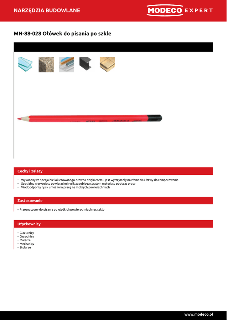 NARZĘDZIA BUDOWLANE MN-88-028 Ołówek do pisania po szkle