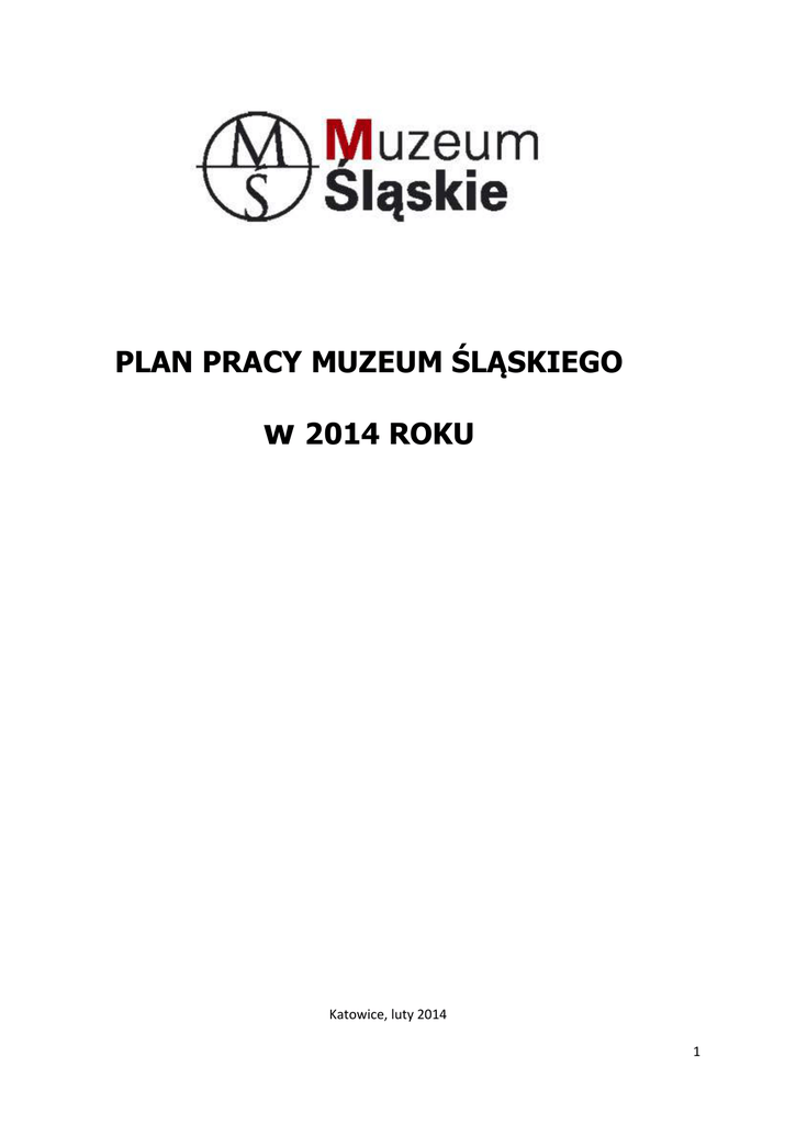 PLAN PRACY MUZEUM ŚLĄSKIEGO w 2014 ROKU Katowice, luty 2014 1 Plan działań Muzeum Śląskiego i Centrum Scenografii Polskiej na rok 2014 w liczbach (według planów złożonych w Urzędzie Marszałkowskim) Działalność wystawiennicza: 1. Liczba wystaw stałych - 4 2. Liczba wystaw czasowych własnych - 24 3. Liczba wystaw czasowych obcych - 2 Publikacje: Liczba tytułów ogółem - 50 - publikacje zwarte - 10 - druki ulotne - 40 Edukacja: Liczba lekcji muzealnych - 300 Liczba imprez, koncertów, sesji naukowych wykładów - 45 Inne formy działalności - 5 Liczba uczestników lekcji muzealnych - 5 000 Frekwencja: Liczba zwiedzających w grupach szkolnych - 6 000 Liczba pozostałych zwiedzających (indywidualnie lub w grupach) - 79 000 CAŁKOWITA LICZBA ZWIEDZAJĄCYCH w siedzibie i poza siedzibą: 85 000 W 2014 roku będą kontynuowane prace związane z przenosinami Muzeum Śląskiego w Katowicach i Centrum Scenografii Polskiej do nowego kompleksu przy ul. Tadeusza Dobrowolskiego. Zaplanowana działalność bieżąca będzie modyfikowana w zależności od postępu prac związanych z zagospodarowaniem nowej siedziby i środków finansowych przeznaczonych na działalność bieżącą, będących w dyspozycji Muzeum Śląskiego w Katowicach. 1. Działalność wystawiennicza: Wystawy stałe 1. Wystawa sztuki polskiej do 1945 roku. Galeria malarstwa polskiego z lat 1800 – 1945 w nowej, poszerzonej odsłonie (rzeźba, grafika). Kurator: Katarzyna Jarmuł 2. Wystawa współczesnej sztuki polskiej. Galeria prezentująca dokonania sztuki po roku 1945 roku w nowej, poszerzonej odsłonie (fotografia, rzeźba, grafika, instalacje, street art, wideo–art). Kurator: Joanna Szeligowska-Farquhar 3. Śląska sztuka sakralna. Wystawa złożona ze zbiorów własnych i depozytu z Muzeum Archidiecezjalnego w Katowicach. Kurator: Henryka Olszewska-Jarema 4. Galeria sztuki nieprofesjonalnej. Wystawa składająca się z trzech części: 2 I. Prezentacja zjawiska plastyki nieprofesjonalnej na Górnym Śląsku w oparciu o prace najciekawszych twórców z lat 1945-2000, podzielona na trzy warstwy tematyczne: Pod ziemią – etos pracy, Powierzchnia – dzień jak co dzień, W stronę nieba – wiara i nadzieja. II. Powrót – prezentacja grupy plastycznej „Gwarek 58” wywodzącej się z dawnej kopalni „Katowice”. Tytuł nawiązuje do powrotu do kopalni po latach, tym razem w odmiennej roli, pracujących tam kiedyś górników. III. Prezentacja najciekawszych twórców współczesnych w ramach wystawy stałej. Każdorazowo wystawa będzie kompleksowo omawiać dorobek najwybitniejszych artystów lub najciekawsze współczesne zjawiska w ramach plastyki nieprofesjonalnej. Kurator: Sonia Wilk 5. Galeria Narodowa Scenografii Polskiej. Wystawa stała Centrum Scenografii Polskiej projektowana przez Borisa Kudličkę. Wystawy czasowe • Fotoplastykon Fotoplastykon, jeden z ciekawszych eksponatów MŚK, służy do projekcji fotografii stereoskopowych, czyli obrazów przestrzennych. Pozwala na równoczesne oglądanie przeźroczy na 24 stanowiskach. Co trzy miesiące prezentowane są nowe zestawy dawnych fotografii ułożone w cykle tematyczne (4 wystawy w skali roku). 10.05 - 29.06. Miłość i medycyna. Prezentacja prac Patrycji Orzechowskiej w fotoplastykonie i w przestrzeni sali wystawowej. Opieka merytoryczna: Dział Dokumentacji Mechanicznej 1. Metropolis; wstępnie planowany termin realizacji wystawy: grudzień 2014 Od 2012 roku Muzeum Śląskie jest współorganizatorem programu Metropolis, który prowadzi wspólnie z Fundacją Imago Mundi w Krakowie oraz Galerią Kronika w Bytomiu. W projekt zaangażowano kilkudziesięciu artystów rodzimych i z zagranicy zajmujących się badaniem różnych śląskich tematów i stawiający sobie za zadanie stworzenie nowej ikonografii regionu. Projekt realizowany w długoterminowej i wieloetapowej pracy będzie zakończony podsumowującą całość wystawą, prezentującą wszystkie działania twórcze. Kurator: Joanna Szeligowska-Farquhar 2. Śląska Rzecz’ 2013; sierpień – wrzesień 2014 Współpraca z Zamkiem Sztuki Cieszyn. Prezentacja wystawy towarzyszącej kolejnej edycji konkursu "Śląska Rzecz 2013", który promuje śląskich projektantów i firmy, wyłaniając w ramach konkursu najlepsze produkty i projekty graficzne. Prezentowane będą obiekty nagrodzone, wyróżnione i nominowane, wyróżniające się ciekawym designem, innowacyjnością użytych materiałów i technologii. Kurator: Henryka Olszewska-Jarema 3. Muzeum kopalnią znaczeń. Hol główny nowej siedziby. 3 Wystawa fotograficzna obrazująca powstawanie nowej siedziby Muzeum Śląskiego i przekształcenia krajobrazu poprzemysłowego z tym związane. Na wystawie będzie można zobaczyć zdjęcia wykonane przez uczestników serii plenerów fotograficznych zorganizowanych na terenie byłej kopalni Katowice. Kurator: Danuta Kowalik - Dura 4. Nakum miasto Majów. Wystawa fotograficzna autorstwa Roberta Słabońskiego. 30.01. – 27.04. Kurator: dr M. Renata Abłamowicz 5. Oczami śląskich fotografów; 09.10. – 11.01.2015 Kurator: Agata Sady 6. Wojna od frontu i od zaplecza. W ramach projektu Traces of the 1914. 13.02. – 29.06. Międzynarodowy (Niemcy, Francja, Belgia, Polska) projekt, którego celem jest wystawa kommemoratywna poświęcona udziałowi Ślązaków w I wojnie światowej. Projekt realizowany we współpracy III LO w Gliwicach. Koordynator części polskiej, kurator wystawy: dr Joanna Knapik 7. Górny Śląsk a I wojna światowa, 18.09. – 11.01.2015 Przybliżenie roli przemysłu śląskiego w produkcji wojennej, wpływu wojny na życie na Śląsku. Wystawa pokaże też udział Górnoślązaków w działaniach na różnych frontach i w Armii gen. J. Hallera. Kurator: Michał Witkowski 8.Lale, misie, koniki... Przyjaciele dziecięcych zabaw; 30.04. – 31.08. Wystawa zabawek ze zbiorów własnych, ewentualnie najbliższych muzeów lub kolekcji prywatnych. Prezentacja zabawek 