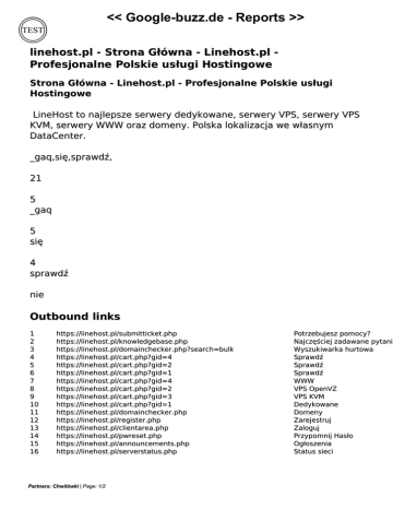 << Google-buzz.de - Reports >> linehost.pl - Strona Główna - Linehost.pl Profesjonalne Polskie usługi Hostingowe Strona Główna - Linehost.pl - Profesjonalne Polskie usługi Hostingowe LineHost to najlepsze serwery dedykowane, serwery VPS, serwery VPS KVM, serwery WWW oraz domeny. Polska lokalizacja we własnym DataCenter. _gaq,się,sprawdź, 21 5 _gaq 5 się 4 sprawdź nie Outbound links 1 2 3 4 5 6 7 8 9 10 11 12 13 14 15 16 https://linehost.pl/submitticket.php https://linehost.pl/knowledgebase.php https://linehost.pl/domainchecker.php?search=bulk https://linehost.pl/cart.php?gid=4 https://linehost.pl/cart.php?gid=2 https://linehost.pl/cart.php?gid=1 https://linehost.pl/cart.php?gid=4 https://linehost.pl/cart.php?gid=2 https://linehost.pl/cart.php?gid=3 https://linehost.pl/cart.php?gid=1 https://linehost.pl/domainchecker.php https://linehost.pl/register.php https://linehost.pl/clientarea.php https://linehost.pl/pwreset.php https://linehost.pl/announcements.php https://linehost.pl/serverstatus.php Partners: Chwilówki | Page: 1/2 Potrzebujesz pomocy? Najczęściej zadawane pytani Wyszukiwarka hurtowa Sprawdź Sprawdź Sprawdź WWW VPS OpenVZ VPS KVM Dedykowane Domeny Zarejestruj Zaloguj Przypomnij Hasło Ogłoszenia Status sieci << Google-buzz.de - Reports >> 17 18 19 20 21 https://www.facebook.com/LineHostPL/ https://linehost.pl/knowledgebase.php https://forum.linehost.pl https://linehost.pl/contact.php https://linehost.pl/rules.php Partners: Chwilówki | Page: 2/2 Powered by TCPDF (www.tcpdf.org) Powered by TCPDF (www.tcpdf.org) img => Baza Wiedzy Forum Linehost Kontakt Regulamin