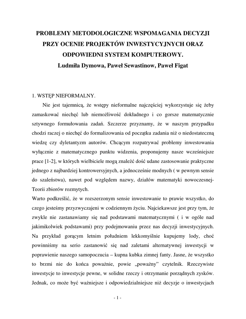 wiedz czy dyletantyzm autorów. Chc cym rozpatrywa problemy inwestowania